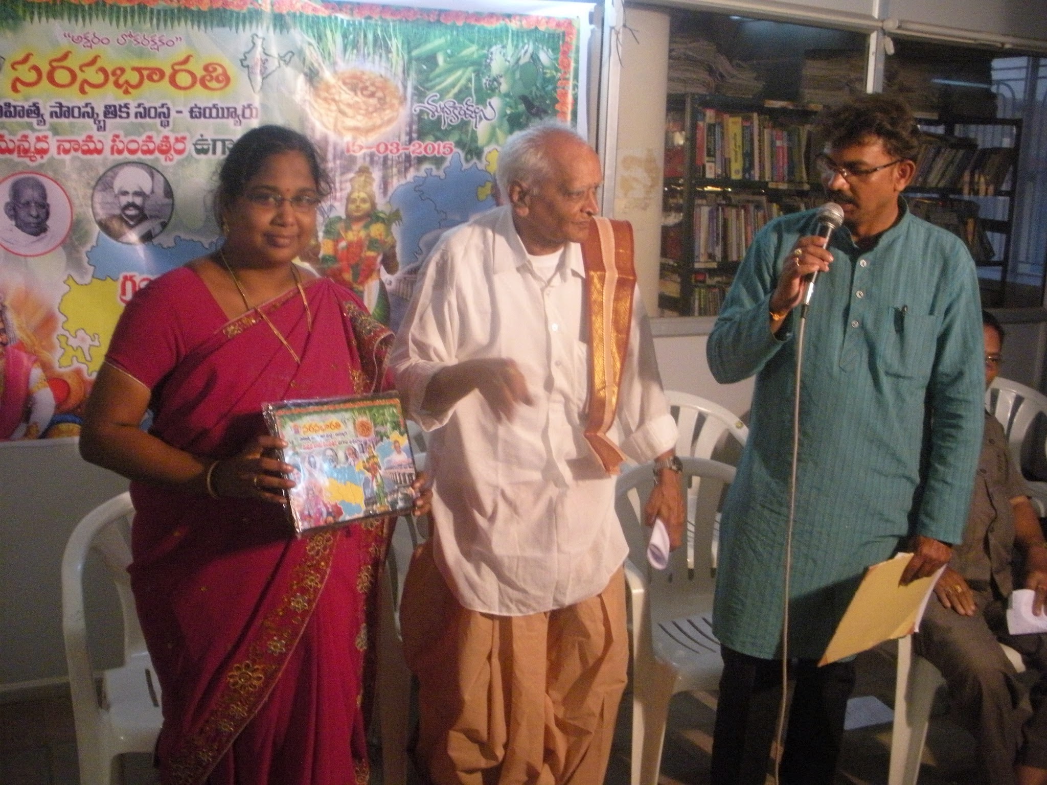← సరసభారతి ఉయ్యూరు ఆధ్వర్యంలో 76వ సమావేశం ఆదివారంనాడు (15 – 3 – 15 ) మన్మధ నామ సంవత్సర ఉగాది వేడుకలు, కవి సమ్మేళనం, గీర్వాణ కవుల కవితా గీర్వాణము, త్యాగి పేరడీలు గ్రందావిష్కర్ణ , ప్రముఖులకు సత్కారాలు, పురస్కారాల సభ నిర్వహించబడినది . సభలోని చిత్రాలు తిలకించండి .