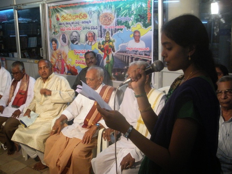 ← సరసభారతి ఉయ్యూరు ఆధ్వర్యంలో 76వ సమావేశం ఆదివారంనాడు (15 – 3 – 15 ) మన్మధ నామ సంవత్సర ఉగాది వేడుకలు, కవి సమ్మేళనం, గీర్వాణ కవుల కవితా గీర్వాణము, త్యాగి పేరడీలు గ్రందావిష్కర్ణ , ప్రముఖులకు సత్కారాలు, పురస్కారాల సభ నిర్వహించబడినది . సభలోని చిత్రాలు తిలకించండి .