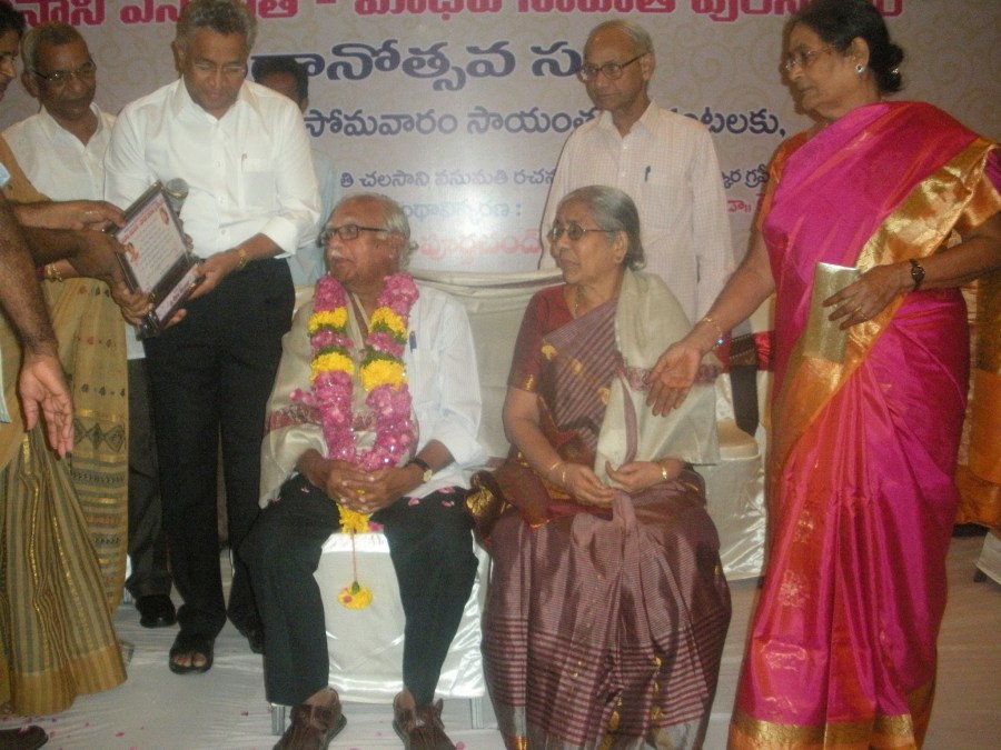 ← విజయవాడ ”మానర్ ఫుడ్ ప్లాజా ”లో 16-3-15 సోమవారం రాత్రి శ్రీమతి చలసాని వసుమతి గారు ,మహా కధకులు శ్రీ విహారి గారికి మహా చిత్రకారులు శ్రీ వీర్రాజు గారికి చెరొక 25,౦౦౦ రూపాయల నగదు ను ”వసుమతి -మాధవ ”పురస్కారం గా అంద జేసిన దృశ్యమాలిక