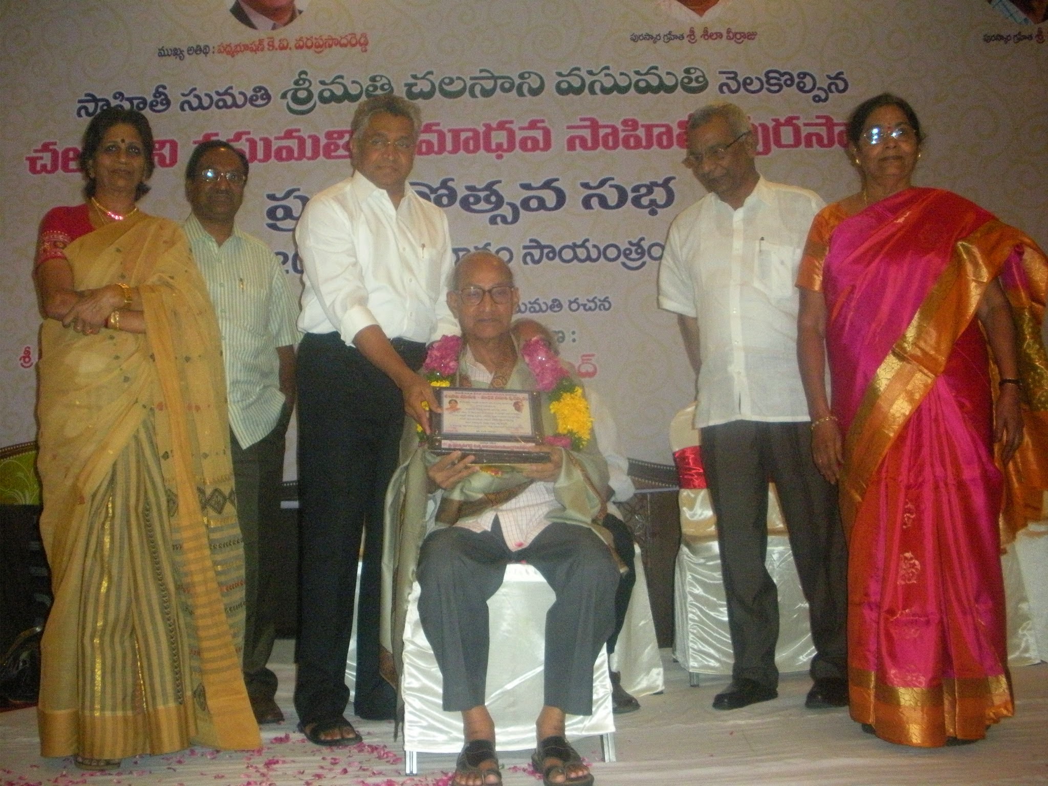 ← విజయవాడ ”మానర్ ఫుడ్ ప్లాజా ”లో 16-3-15 సోమవారం రాత్రి శ్రీమతి చలసాని వసుమతి గారు ,మహా కధకులు శ్రీ విహారి గారికి మహా చిత్రకారులు శ్రీ వీర్రాజు గారికి చెరొక 25,౦౦౦ రూపాయల నగదు ను ”వసుమతి -మాధవ ”పురస్కారం గా అంద జేసిన దృశ్యమాలిక