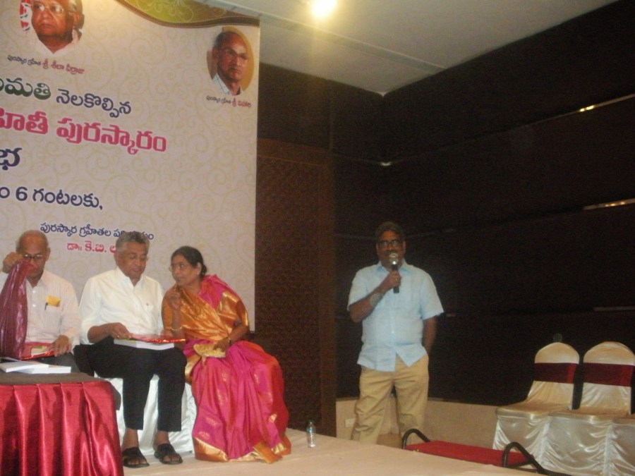 ← విజయవాడ ”మానర్ ఫుడ్ ప్లాజా ”లో 16-3-15 సోమవారం రాత్రి శ్రీమతి చలసాని వసుమతి గారు ,మహా కధకులు శ్రీ విహారి గారికి మహా చిత్రకారులు శ్రీ వీర్రాజు గారికి చెరొక 25,౦౦౦ రూపాయల నగదు ను ”వసుమతి -మాధవ ”పురస్కారం గా అంద జేసిన దృశ్యమాలిక