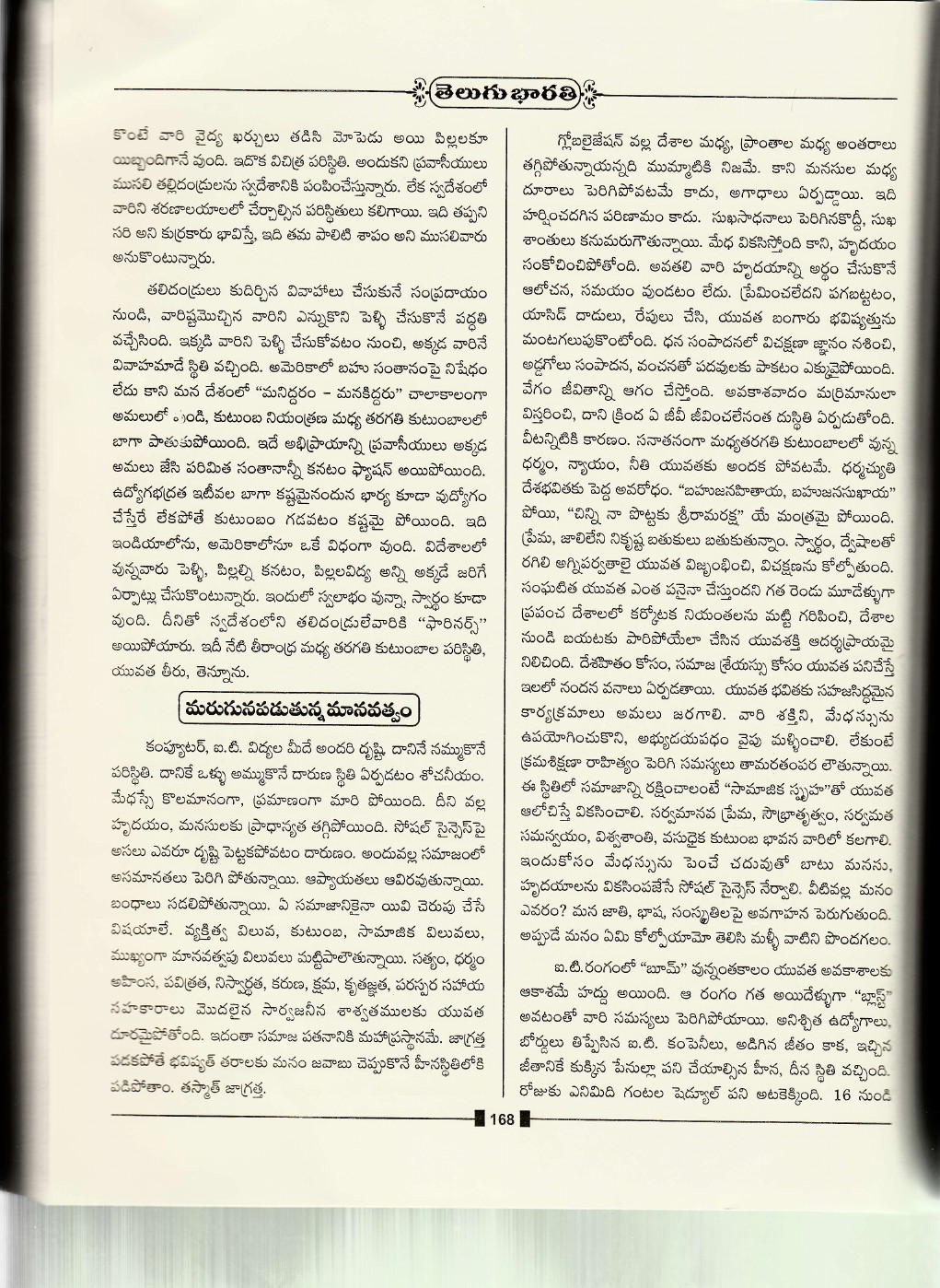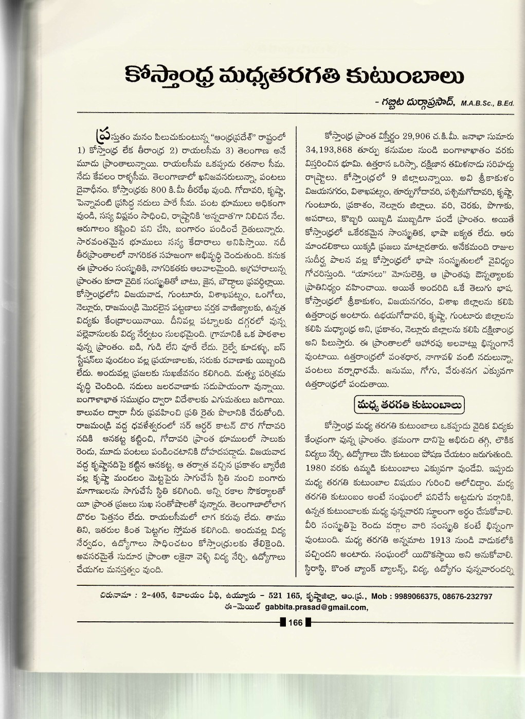 మూడవ ప్రపంచ తెలుగు రచయితల మహాసభల సందర్భంగా ప్రచురించిన పరిశోధనా వ్యాస సంకలనం లో శ్రీ గబ్బిట దుర్గాప్రసాద్ గారు వ్రాసిన “కోస్తాంధ్ర మధ్యతరగతి కుటుంబాలు “