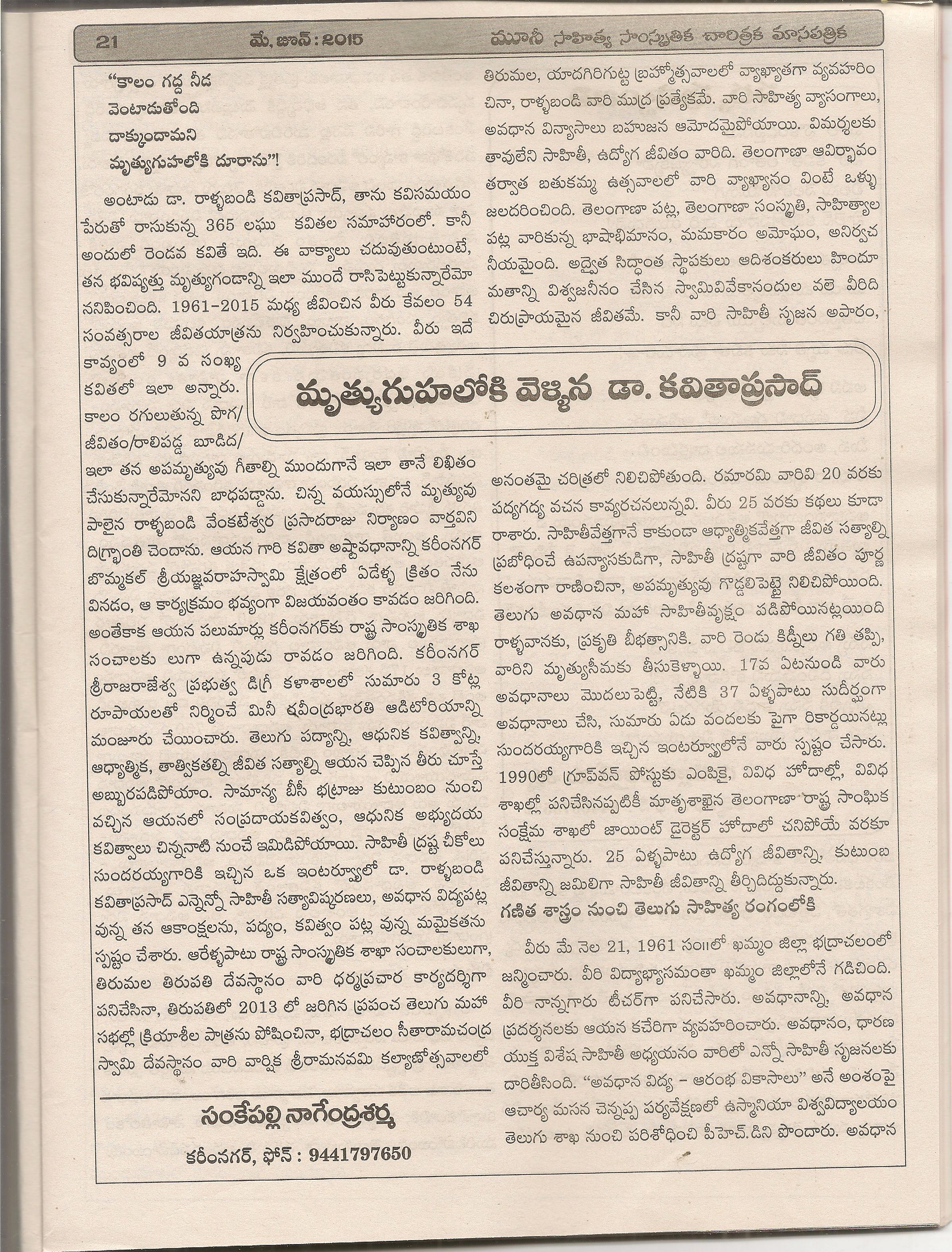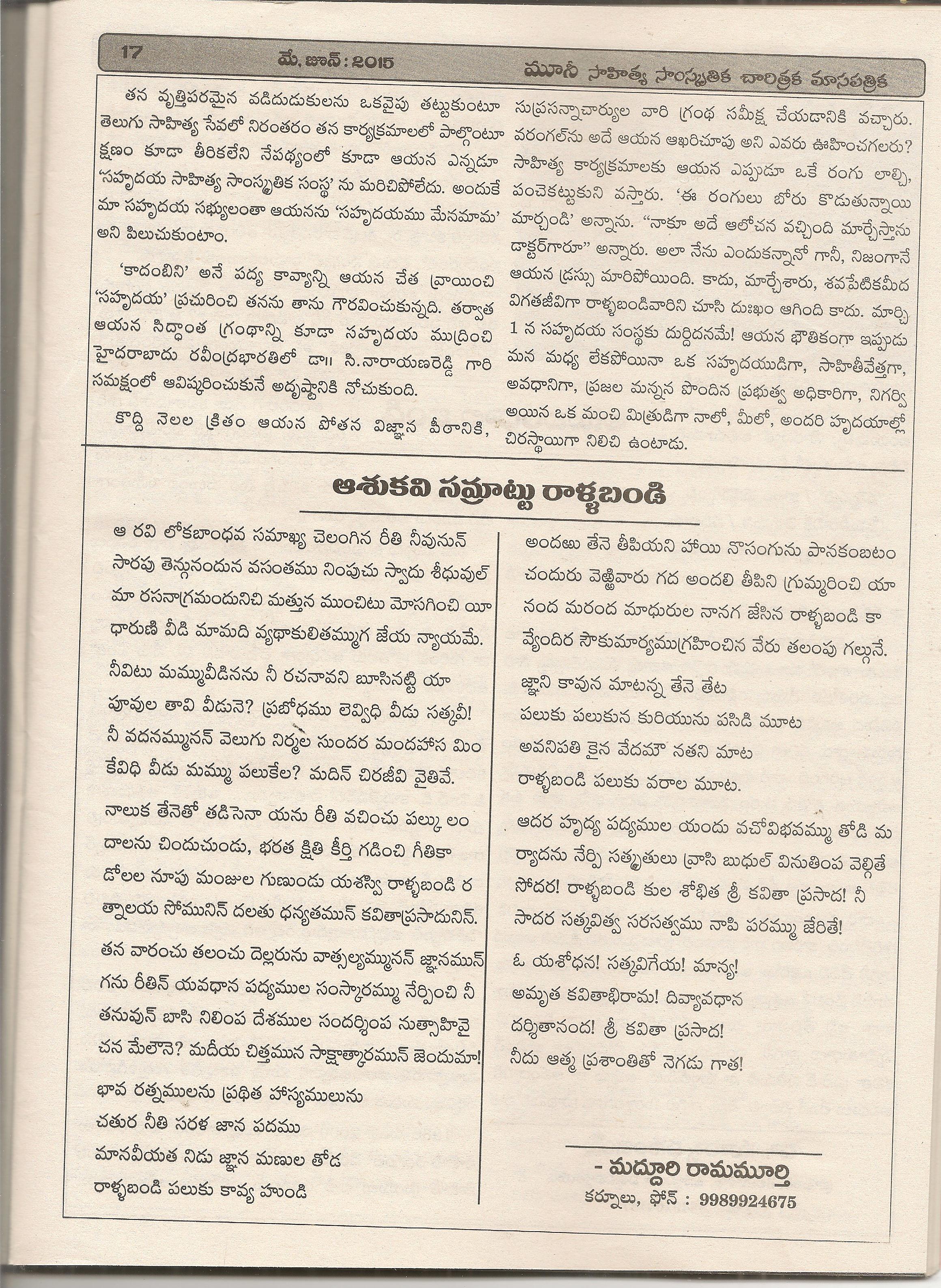 రాళ్ళ బండి కవితా ప్రసాద్ పై మూసీ స్మృతి సంచిక -3