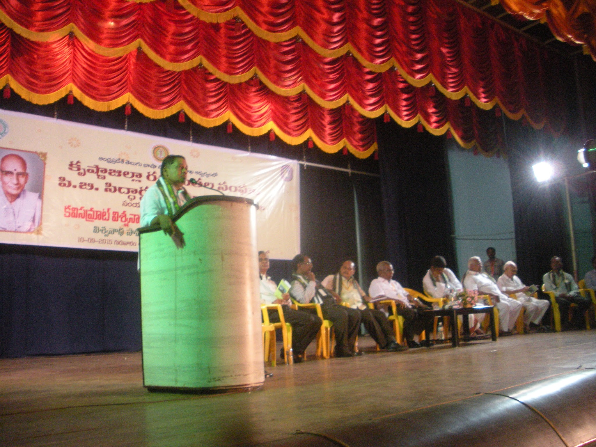 ← 10-9-15 గురువారం విజయవాడ సిద్ధార్ధ కళాశాలలో కవిసామ్రాట్ విశ్వనాధ సత్యనారాయణగారి 120జయంతి రోజున కృష్ణా జిల్లా రచయితల సంఘం ,సిద్ధార్ధ కాలేజి రాష్ట్ర ప్రభుత్వం సంయుక్తంగా నిర్వహించిన ”విశ్వనాధ సాహితీ వైభవం ”దృశ్యమాలిక