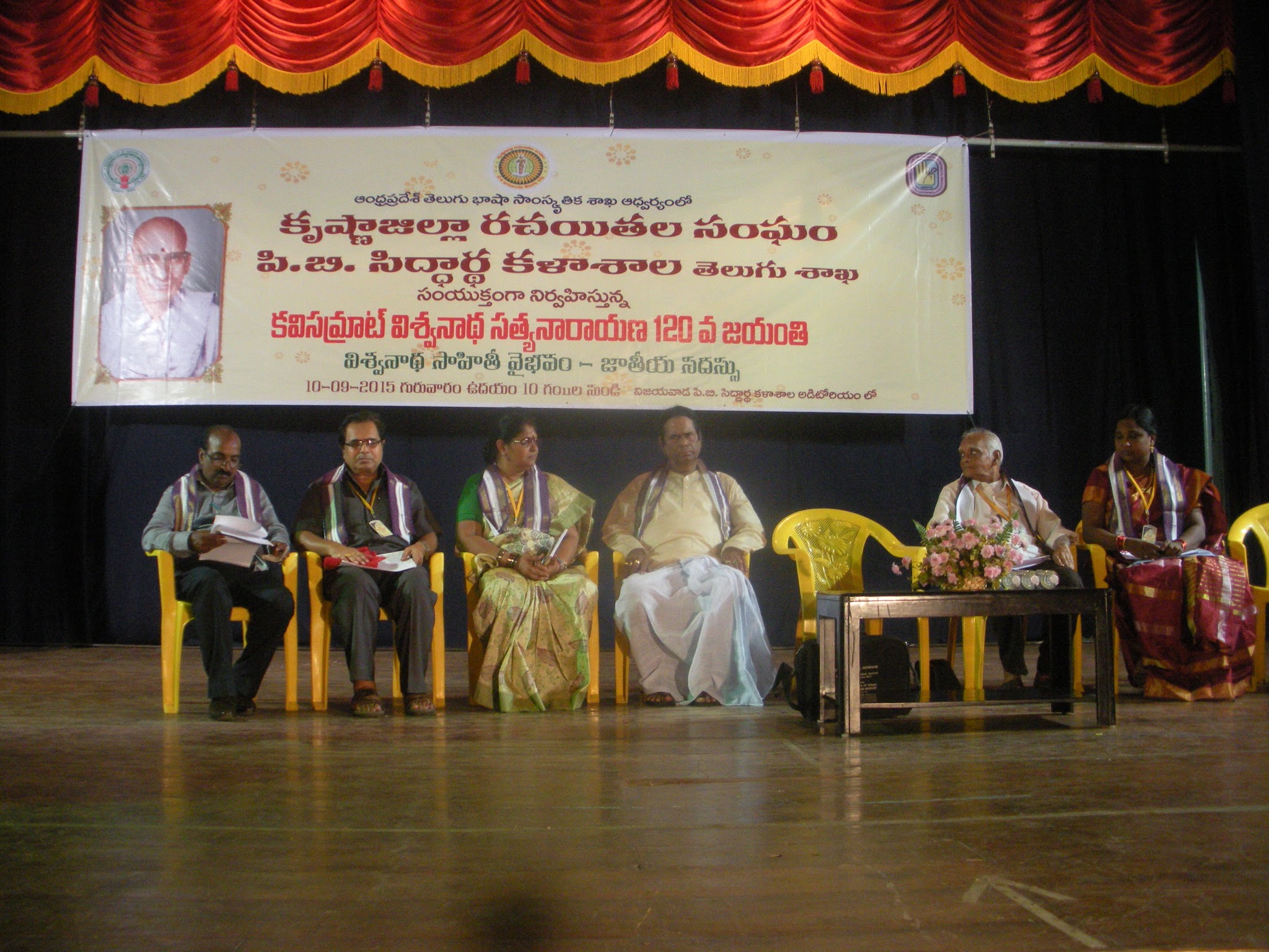 ← 10-9-15 గురువారం విజయవాడ సిద్ధార్ధ కళాశాలలో కవిసామ్రాట్ విశ్వనాధ సత్యనారాయణగారి 120జయంతి రోజున కృష్ణా జిల్లా రచయితల సంఘం ,సిద్ధార్ధ కాలేజి రాష్ట్ర ప్రభుత్వం సంయుక్తంగా నిర్వహించిన ”విశ్వనాధ సాహితీ వైభవం ”దృశ్యమాలిక