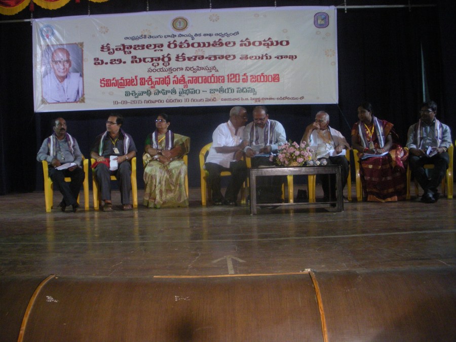 ← 10-9-15 గురువారం విజయవాడ సిద్ధార్ధ కళాశాలలో కవిసామ్రాట్ విశ్వనాధ సత్యనారాయణగారి 120జయంతి రోజున కృష్ణా జిల్లా రచయితల సంఘం ,సిద్ధార్ధ కాలేజి రాష్ట్ర ప్రభుత్వం సంయుక్తంగా నిర్వహించిన ”విశ్వనాధ సాహితీ వైభవం ”దృశ్యమాలిక