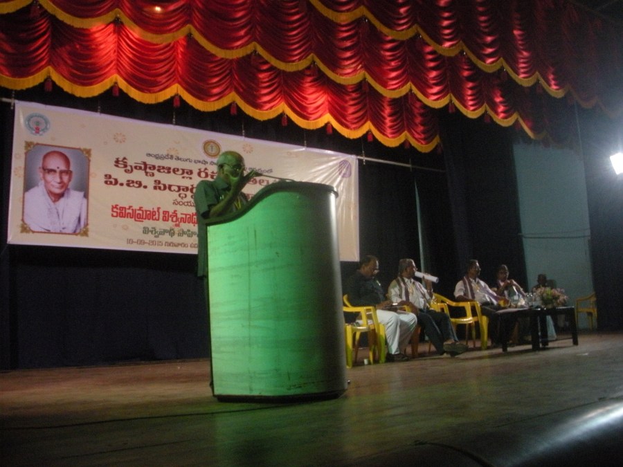 ← 10-9-15 గురువారం విజయవాడ సిద్ధార్ధ కళాశాలలో కవిసామ్రాట్ విశ్వనాధ సత్యనారాయణగారి 120జయంతి రోజున కృష్ణా జిల్లా రచయితల సంఘం ,సిద్ధార్ధ కాలేజి రాష్ట్ర ప్రభుత్వం సంయుక్తంగా నిర్వహించిన ”విశ్వనాధ సాహితీ వైభవం ”దృశ్యమాలిక