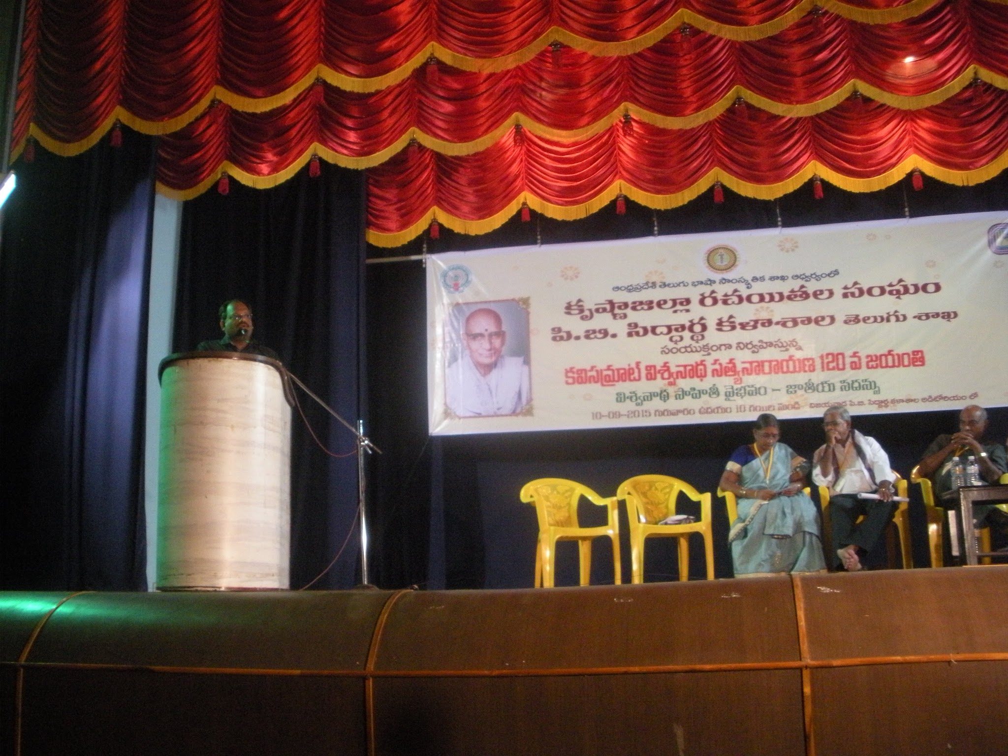 ← 10-9-15 గురువారం విజయవాడ సిద్ధార్ధ కళాశాలలో కవిసామ్రాట్ విశ్వనాధ సత్యనారాయణగారి 120జయంతి రోజున కృష్ణా జిల్లా రచయితల సంఘం ,సిద్ధార్ధ కాలేజి రాష్ట్ర ప్రభుత్వం సంయుక్తంగా నిర్వహించిన ”విశ్వనాధ సాహితీ వైభవం ”దృశ్యమాలిక