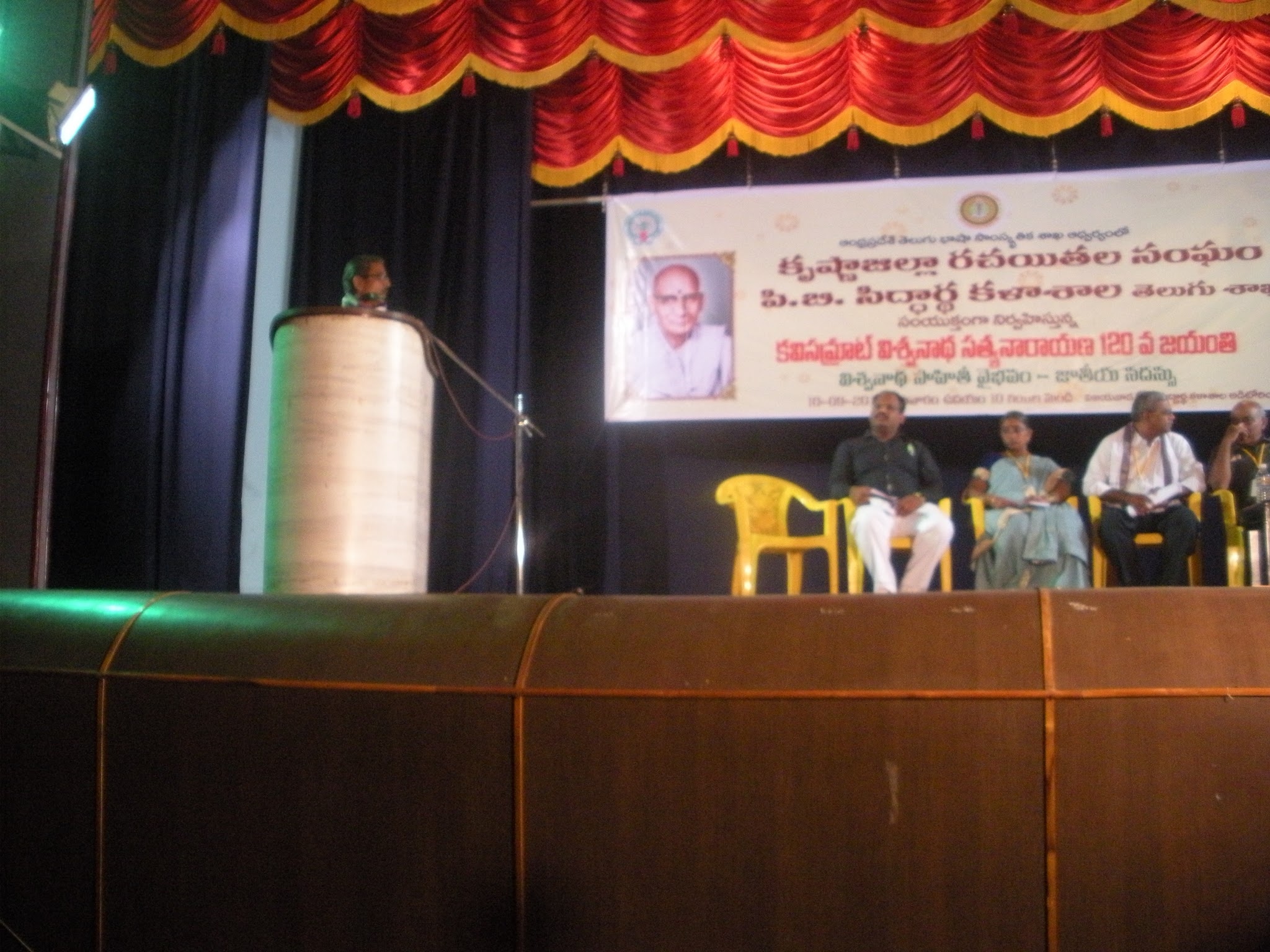 ← 10-9-15 గురువారం విజయవాడ సిద్ధార్ధ కళాశాలలో కవిసామ్రాట్ విశ్వనాధ సత్యనారాయణగారి 120జయంతి రోజున కృష్ణా జిల్లా రచయితల సంఘం ,సిద్ధార్ధ కాలేజి రాష్ట్ర ప్రభుత్వం సంయుక్తంగా నిర్వహించిన ”విశ్వనాధ సాహితీ వైభవం ”దృశ్యమాలిక