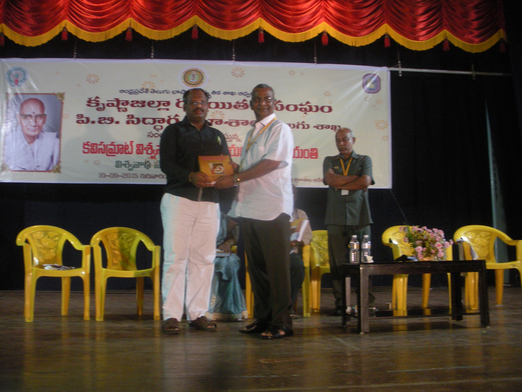 ← 10-9-15 గురువారం విజయవాడ సిద్ధార్ధ కళాశాలలో కవిసామ్రాట్ విశ్వనాధ సత్యనారాయణగారి 120జయంతి రోజున కృష్ణా జిల్లా రచయితల సంఘం ,సిద్ధార్ధ కాలేజి రాష్ట్ర ప్రభుత్వం సంయుక్తంగా నిర్వహించిన ”విశ్వనాధ సాహితీ వైభవం ”దృశ్యమాలిక