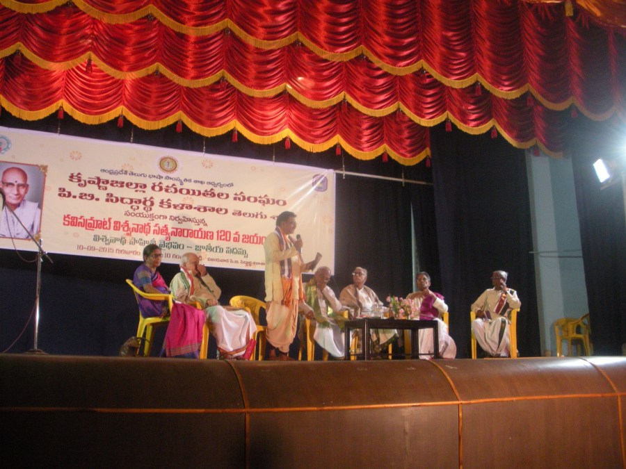 ← 10-9-15 గురువారం విజయవాడ సిద్ధార్ధ కళాశాలలో కవిసామ్రాట్ విశ్వనాధ సత్యనారాయణగారి 120జయంతి రోజున కృష్ణా జిల్లా రచయితల సంఘం ,సిద్ధార్ధ కాలేజి రాష్ట్ర ప్రభుత్వం సంయుక్తంగా నిర్వహించిన ”విశ్వనాధ సాహితీ వైభవం ”దృశ్యమాలిక