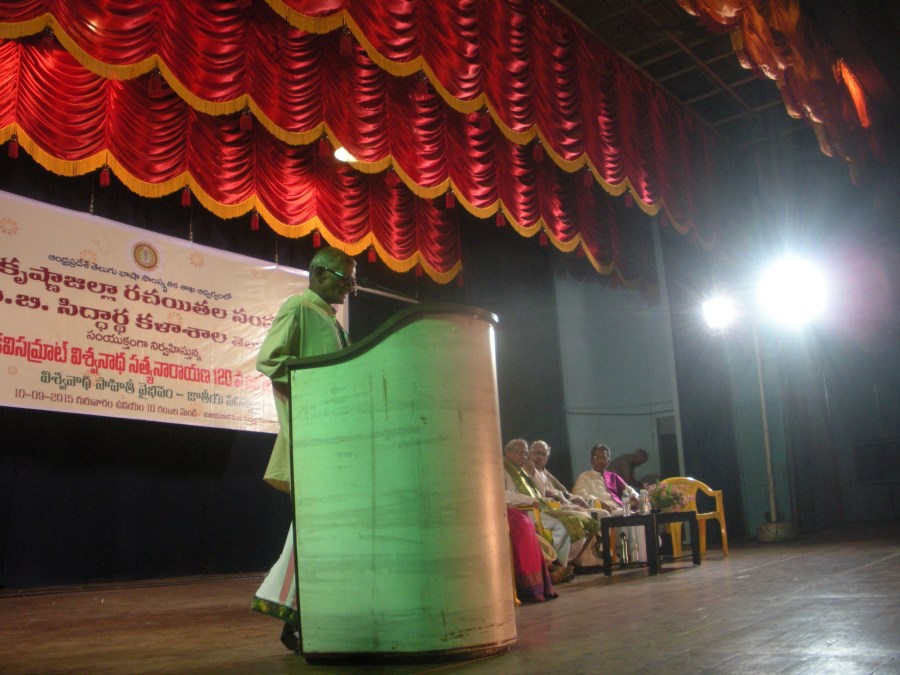 ← 10-9-15 గురువారం విజయవాడ సిద్ధార్ధ కళాశాలలో కవిసామ్రాట్ విశ్వనాధ సత్యనారాయణగారి 120జయంతి రోజున కృష్ణా జిల్లా రచయితల సంఘం ,సిద్ధార్ధ కాలేజి రాష్ట్ర ప్రభుత్వం సంయుక్తంగా నిర్వహించిన ”విశ్వనాధ సాహితీ వైభవం ”దృశ్యమాలిక