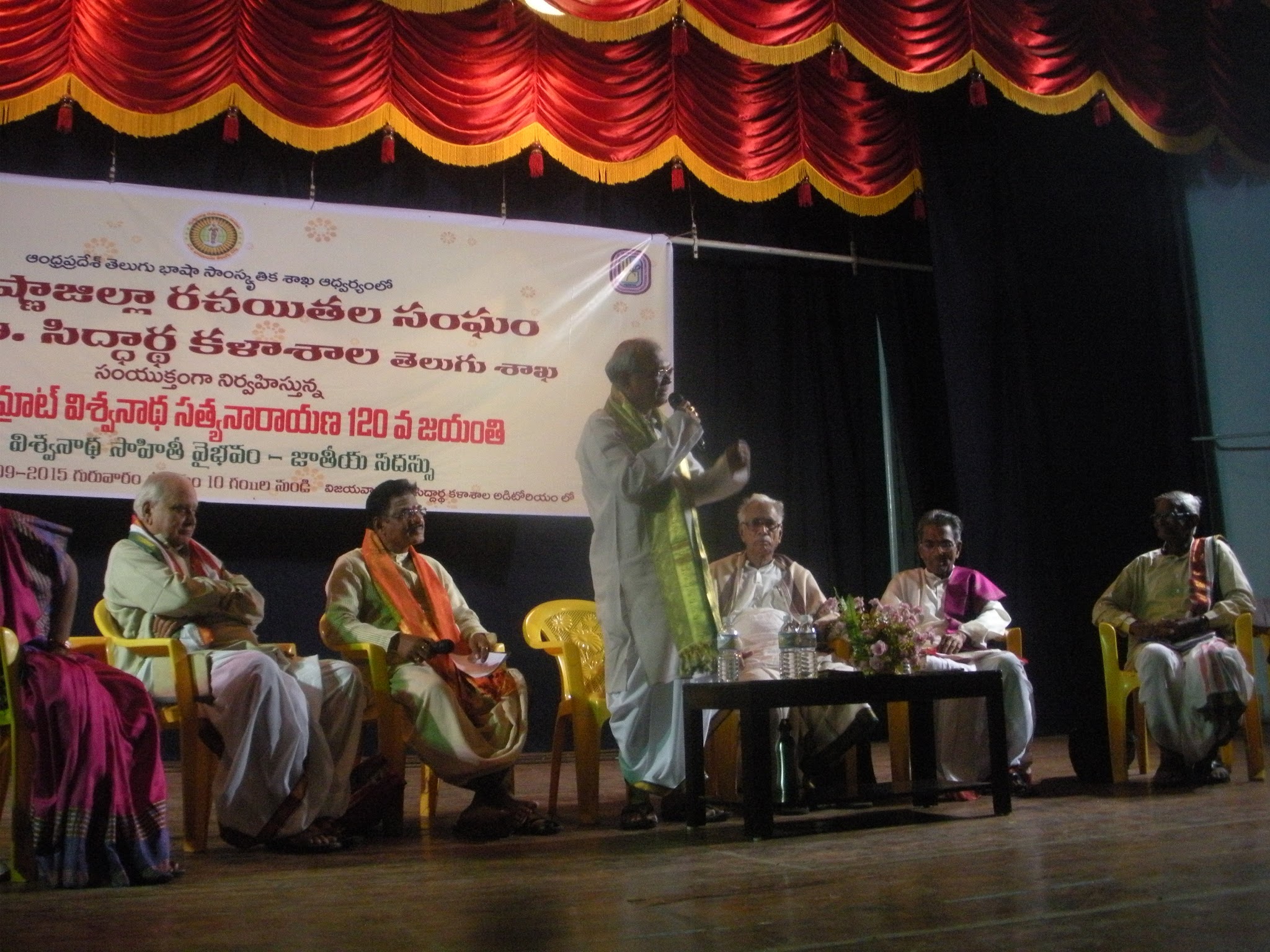 ← 10-9-15 గురువారం విజయవాడ సిద్ధార్ధ కళాశాలలో కవిసామ్రాట్ విశ్వనాధ సత్యనారాయణగారి 120జయంతి రోజున కృష్ణా జిల్లా రచయితల సంఘం ,సిద్ధార్ధ కాలేజి రాష్ట్ర ప్రభుత్వం సంయుక్తంగా నిర్వహించిన ”విశ్వనాధ సాహితీ వైభవం ”దృశ్యమాలిక