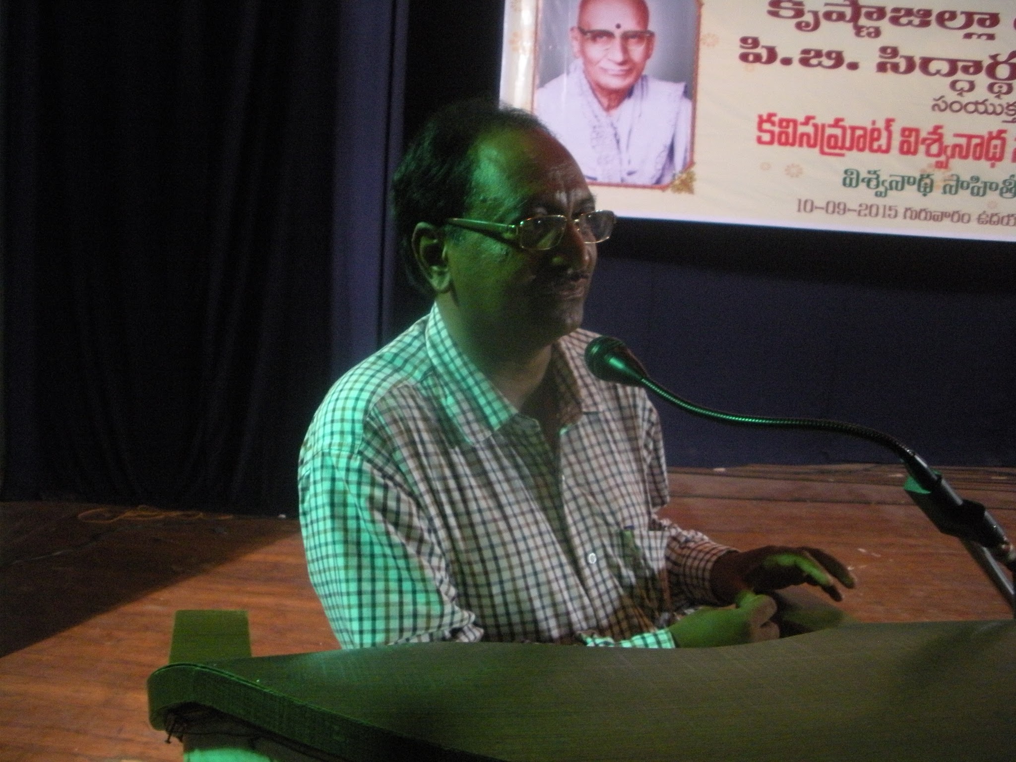 ← 10-9-15 గురువారం విజయవాడ సిద్ధార్ధ కళాశాలలో కవిసామ్రాట్ విశ్వనాధ సత్యనారాయణగారి 120జయంతి రోజున కృష్ణా జిల్లా రచయితల సంఘం ,సిద్ధార్ధ కాలేజి రాష్ట్ర ప్రభుత్వం సంయుక్తంగా నిర్వహించిన ”విశ్వనాధ సాహితీ వైభవం ”దృశ్యమాలిక