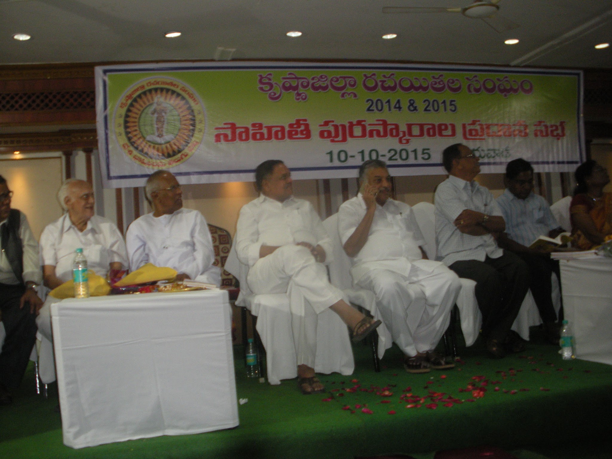 ← 10-10-15 శనివారం సాయంత్రం విజయవాడ హోటల్ ఐలాపురం లో కృష్ణాజిల్లా రచయితల సంఘం అందజేసిన సాహితీ పురస్కార సభా దృశ్యాలు
