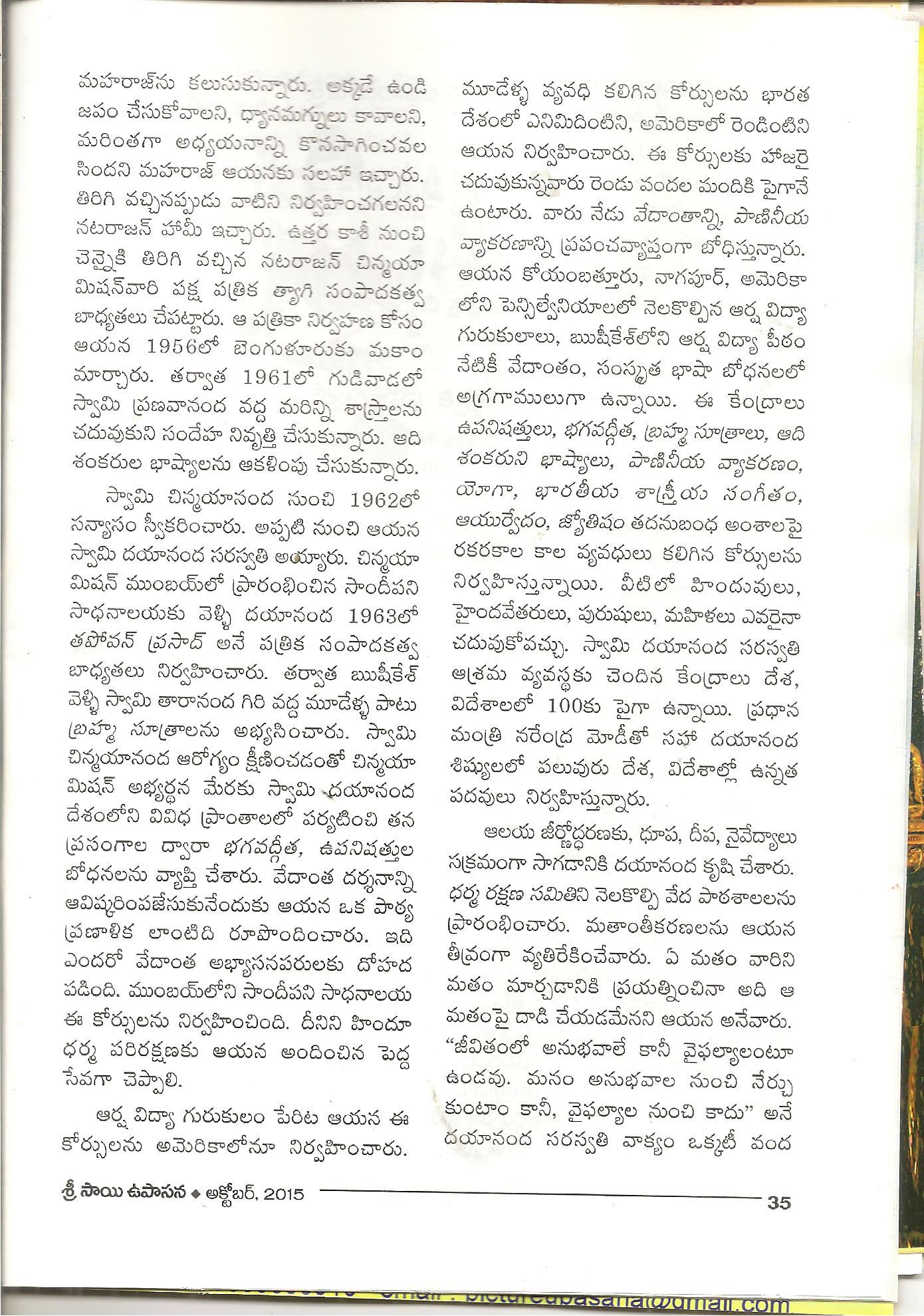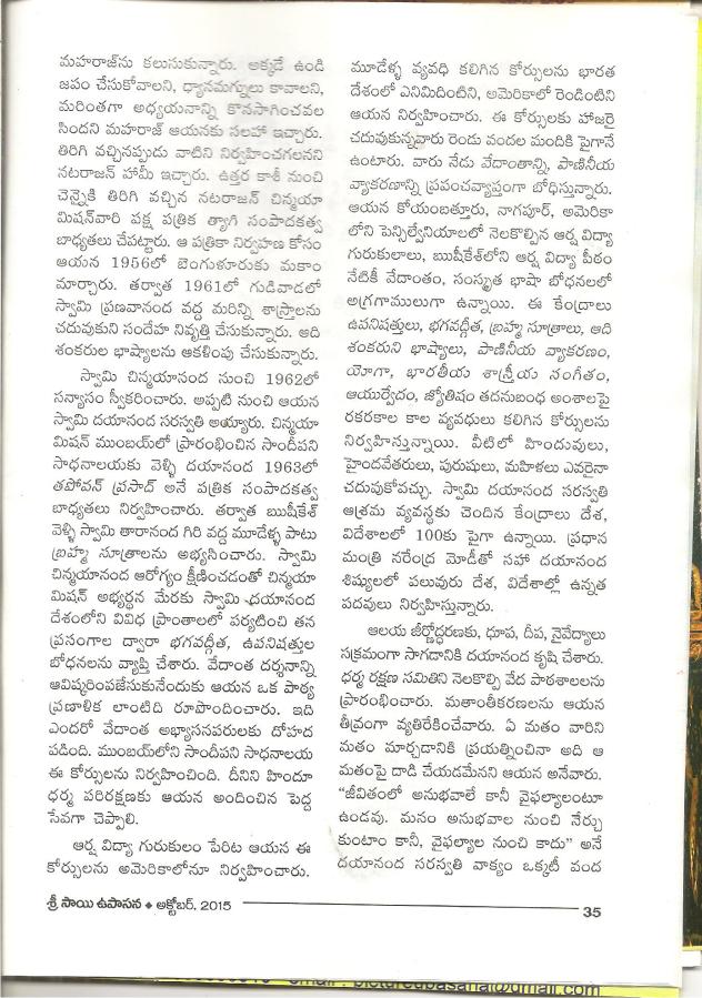← స్వామి చిన్మయానంద శిష్యులు -స్వామి దయానంద -శ్రీ సాయి ఉపాసన మాసపత్రిక