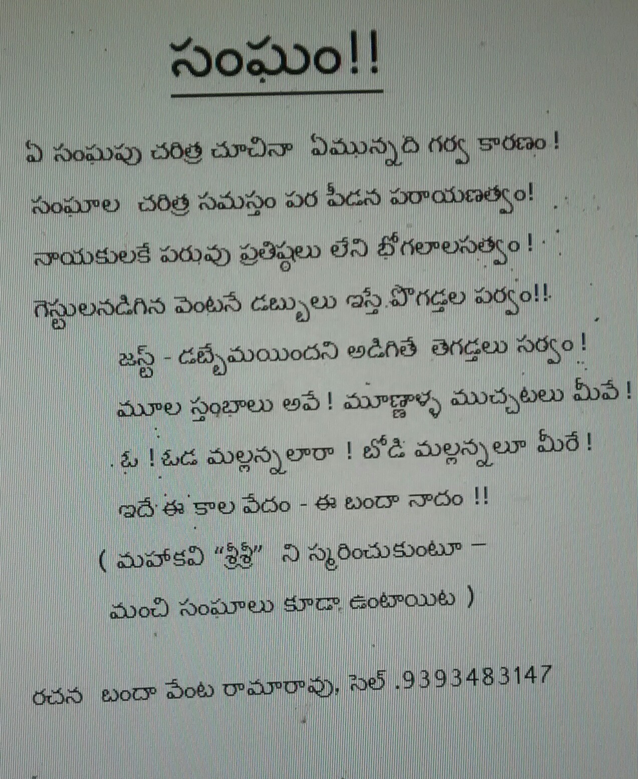 ← సంఘం – బందా వేంకట రామారావు
