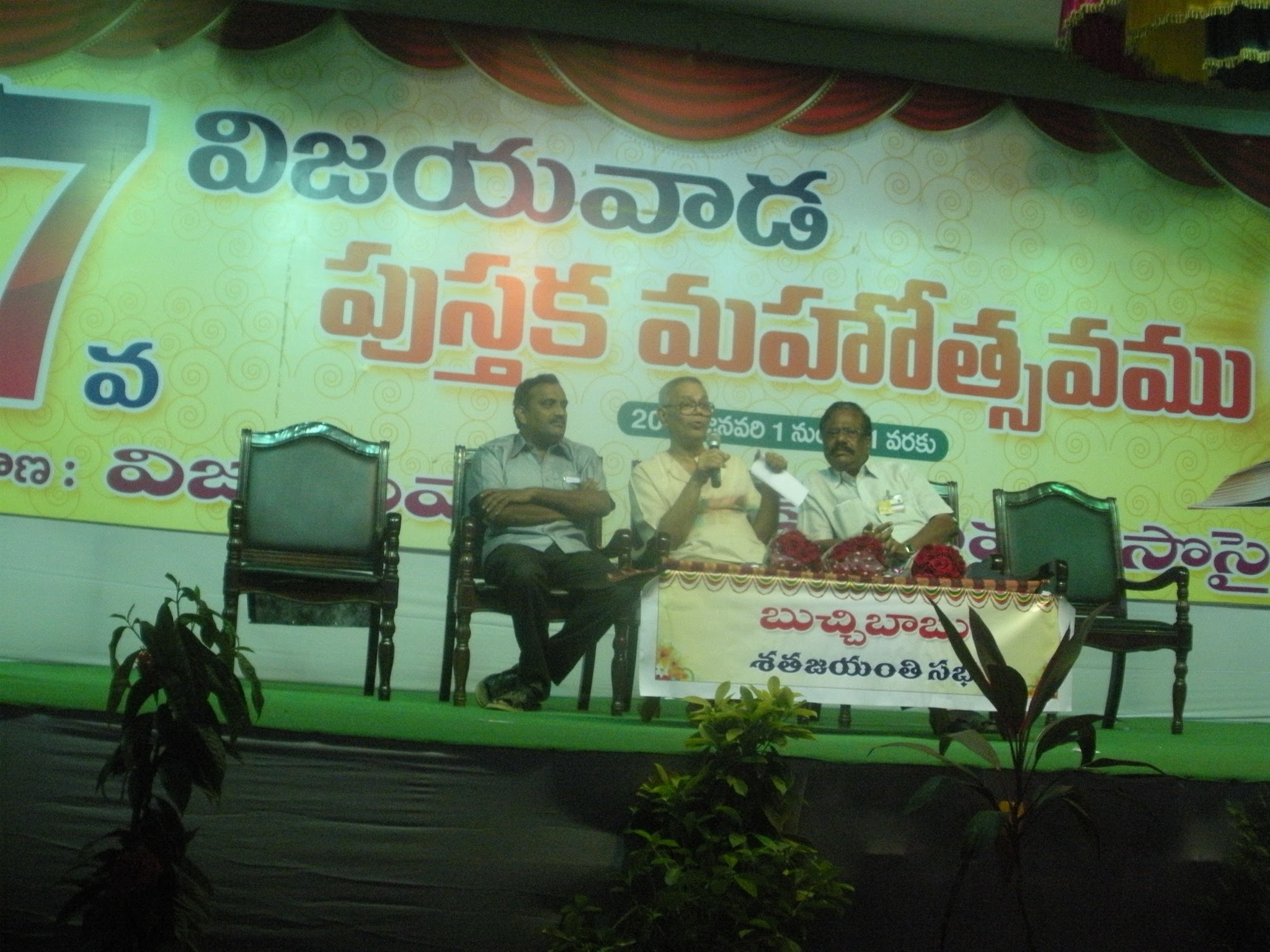 ← 27వ విజయవాడ పుస్తక మహోత్సవం లో 5-1-16 మంగళవారం సాయంత్రం శ్రీ అరవిందుల సావిత్రి పై ”highlights in Savitri ఆంగ్ల గ్రంధా విష్కరణ ,”బుచ్చి బాబు శత జయంతి” సభా దృశ్యాలు