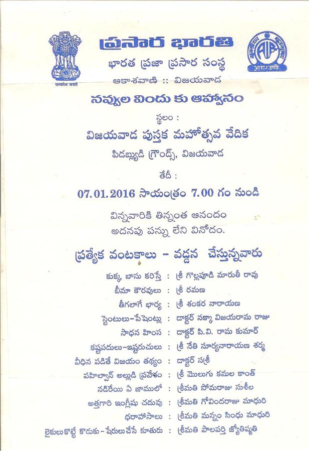 ← 27వ విజయవాడ పుస్తక మహోత్సవం లో 5-1-16 మంగళవారం సాయంత్రం శ్రీ అరవిందుల సావిత్రి పై ”highlights in Savitri ఆంగ్ల గ్రంధా విష్కరణ ,”బుచ్చి బాబు శత జయంతి” సభా దృశ్యాలు