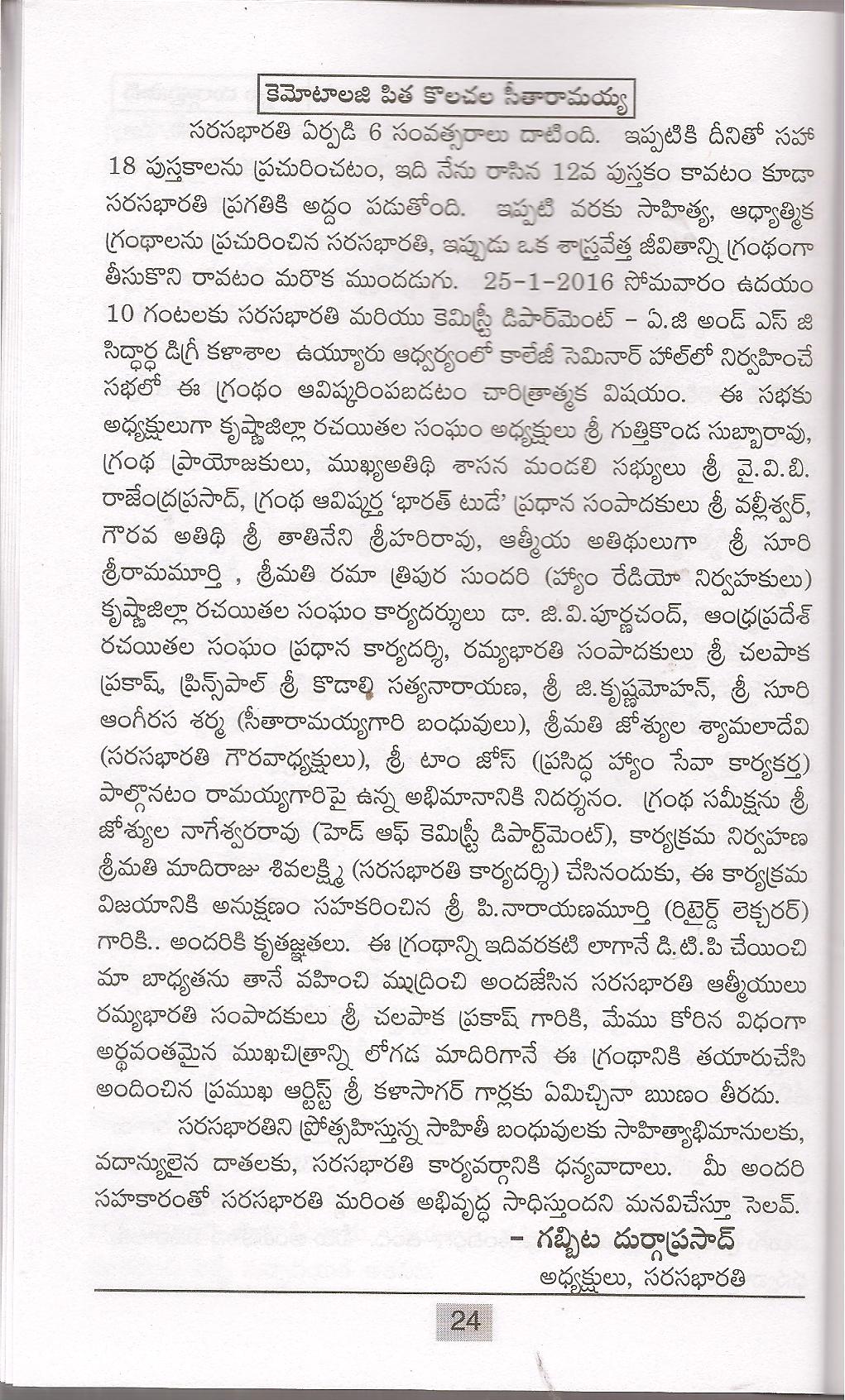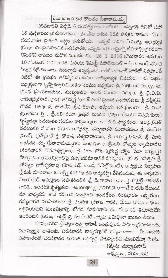 • సరసభారతి ప్రగతి