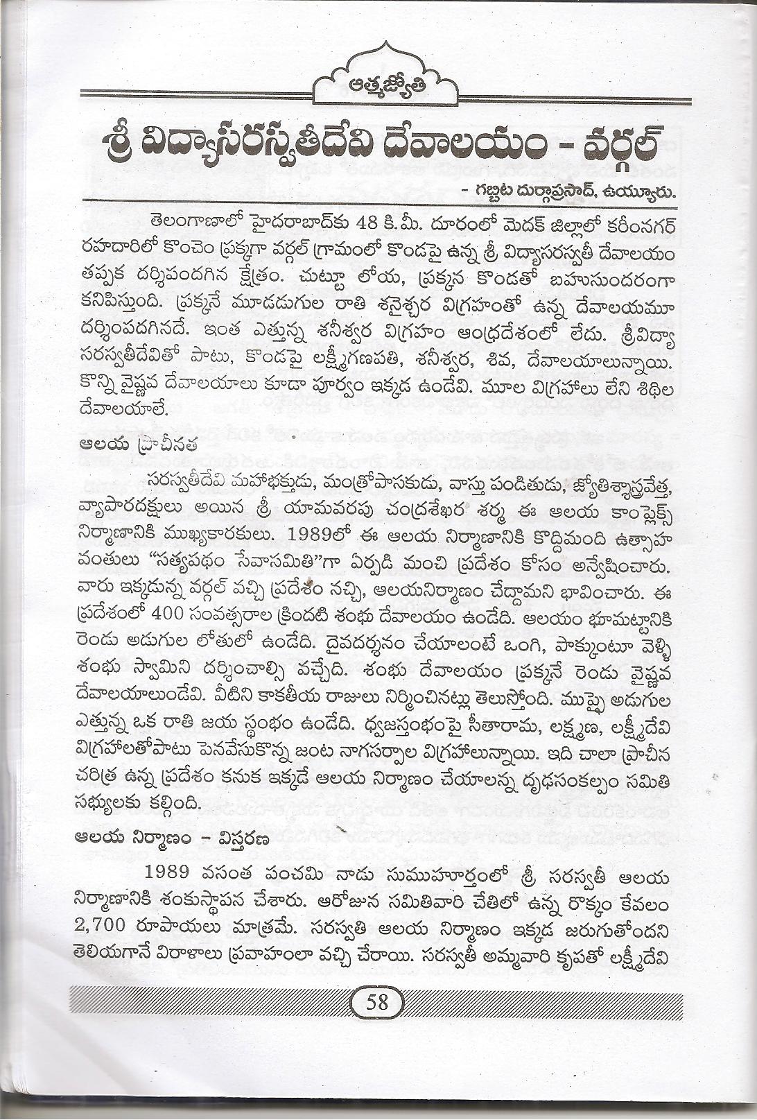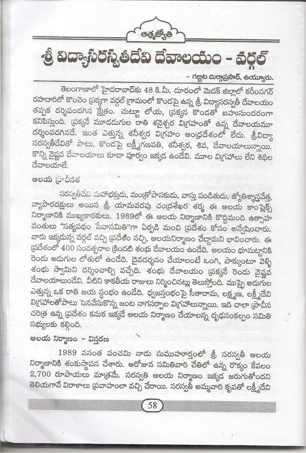 ← విద్యా సరస్వతీ దేవాలయం వర్గల్ -ఆత్మజ్యోతి -ఫిబ్రవరి సంచికలో నా వ్యాసం