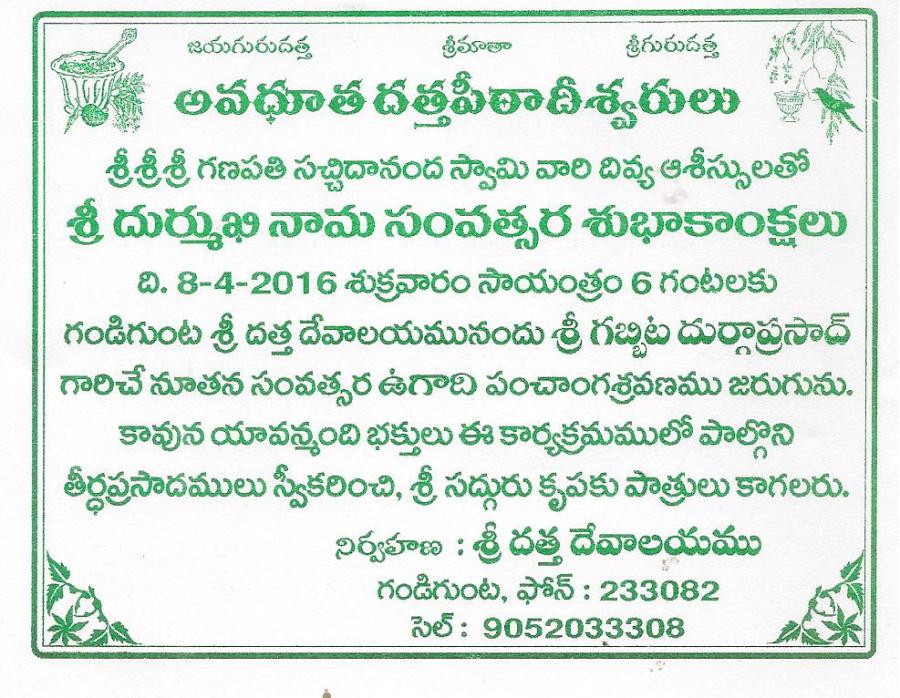 ← ఉగాది నాడు గండి గుంత దత్త గుడి లో నా పంచా0గ శ్రవణం