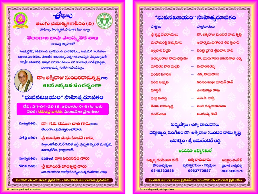 ← సాహితీ ప్రియులకు,పద్యం వినాలన్న కుతూహలమున్న శ్రోతలకు మంచి అవకాశం. – “భువనవిజయం”