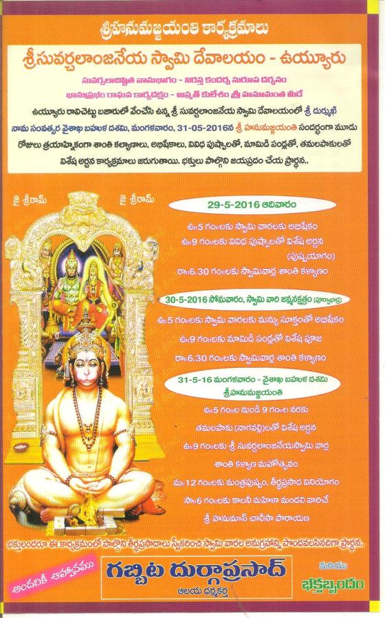 ← ఉయ్యూరు శ్రీ సువర్చలాన్జనేయ స్వామి వార్ల దేవాలయం లో శ్రీ హనుమజ్జయంతి కార్యక్రమ ఆహ్వానం