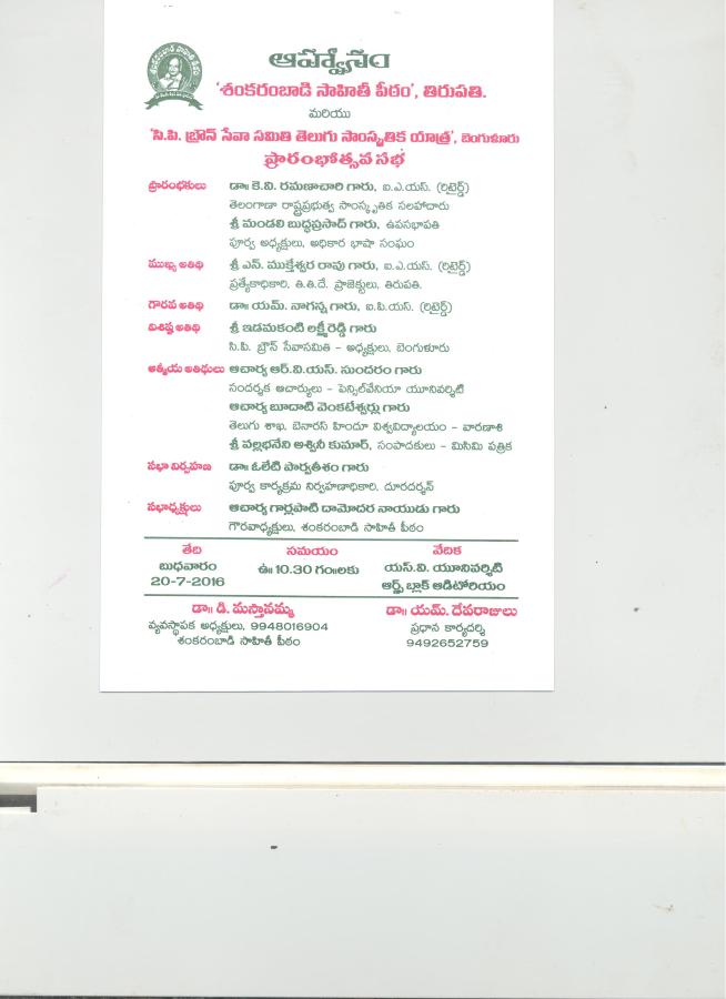 ← సంకరం బడి సాహిత్య పీఠం తిరుపతి