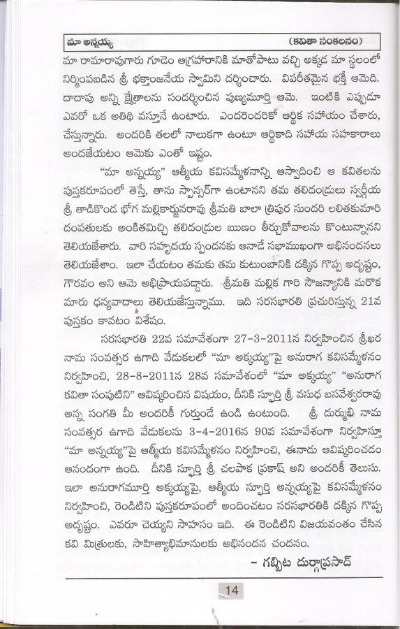 ← మా అన్నయ్య స్పాన్సర్ శ్రీమతి మల్లికగారి విశేషాలు ,పుస్తకం పై చలపాక అభిప్రాయం సరసభారతి దాతల వివరాలు ,ఏ పేజీలో ఏమి ఉంది