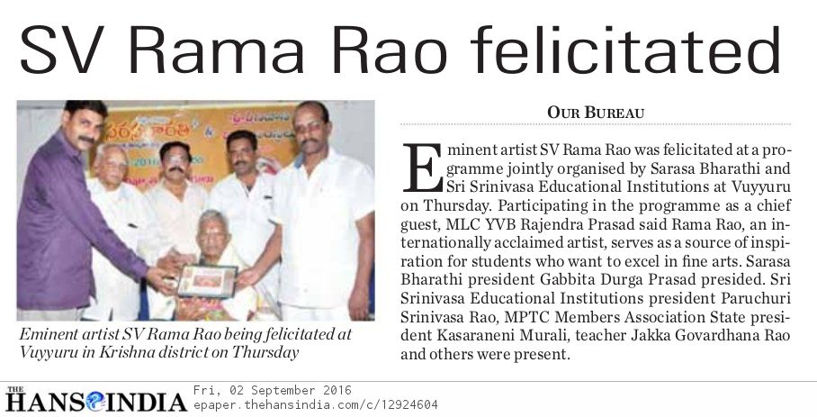 ← విశ్వ విఖ్యాత నైరుప్య చిత్ర కళాయశస్వీ పద్మశ్రీ రామారావుకు ఘన సత్కారం