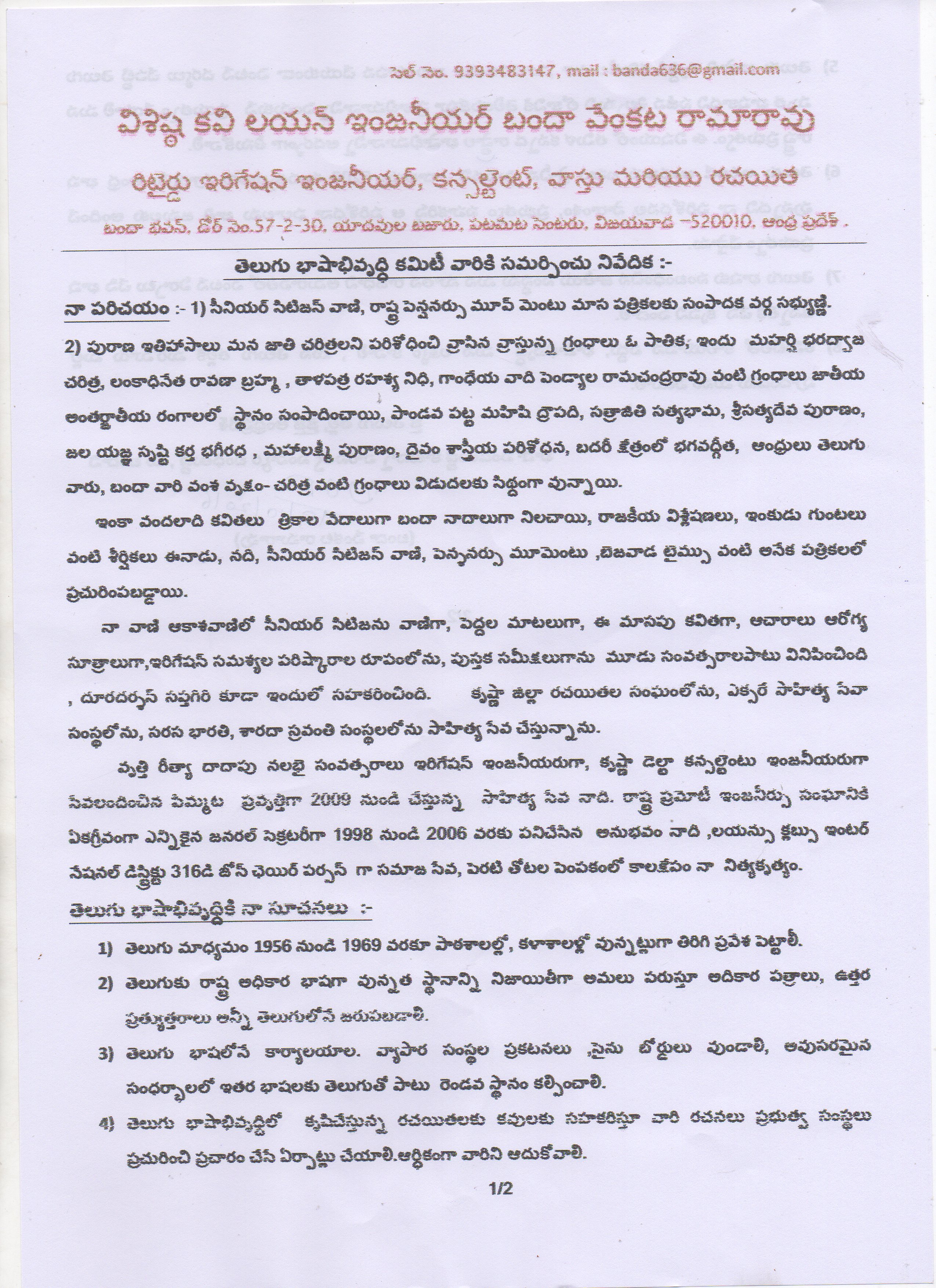 ← తెలుగు భాష సంస్కృతుల అభివృధ్ది కమిటీకి ది.19 అక్టోబరు 2016 నాడు సమర్పించిన నివేదిక