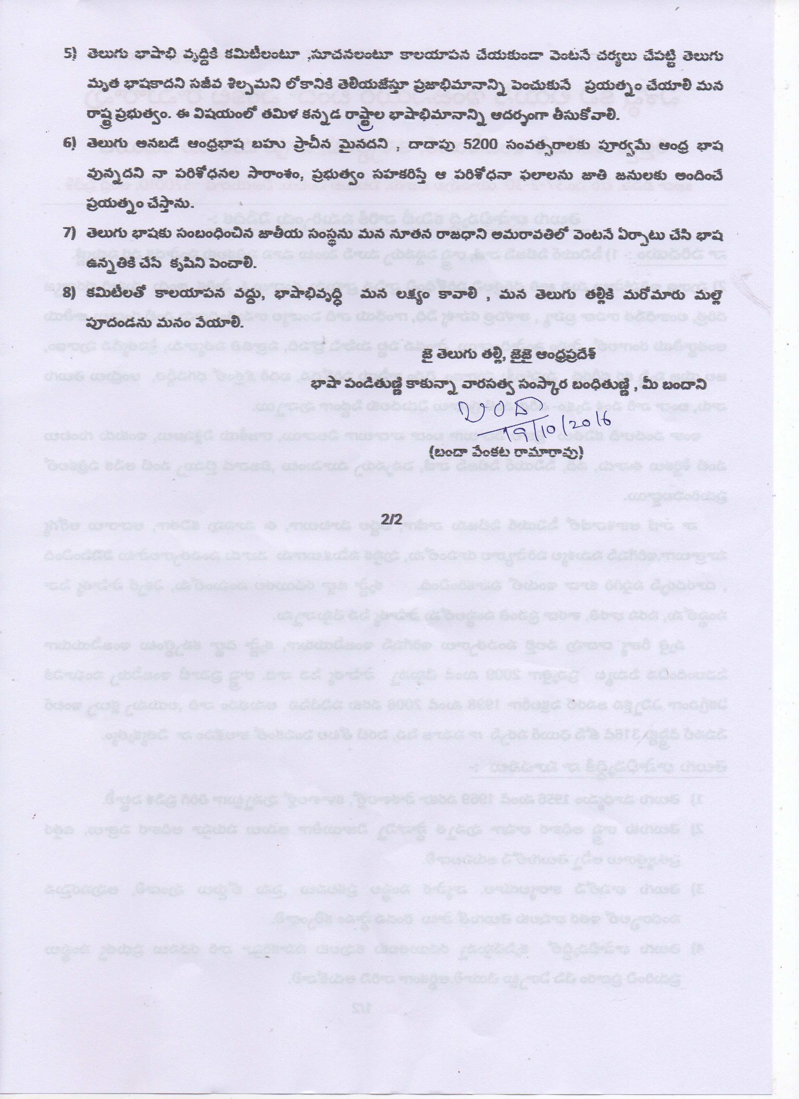 ← తెలుగు భాష సంస్కృతుల అభివృధ్ది కమిటీకి ది.19 అక్టోబరు 2016 నాడు సమర్పించిన నివేదిక