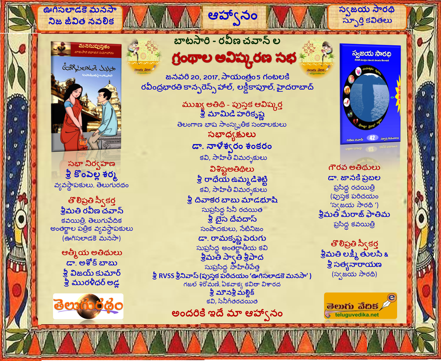 ← గ్రంథావిష్కరణల సభకు ఆహ్వానం (ఊగిసలాడకె మనసా & స్వజయ సారథి)
