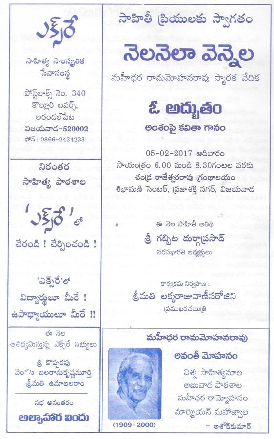 ← నెల నెల వెన్నెల – ఓ అద్భుతం – 05.02.2017 ఆహ్వానం
