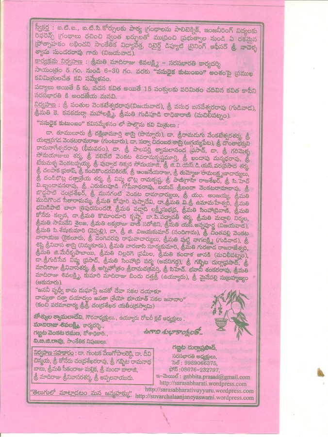 ← సరసభారతి శ్రీ హేవిళంబి ఉగాది వేడుకలకు సాదర ఆహ్వానం