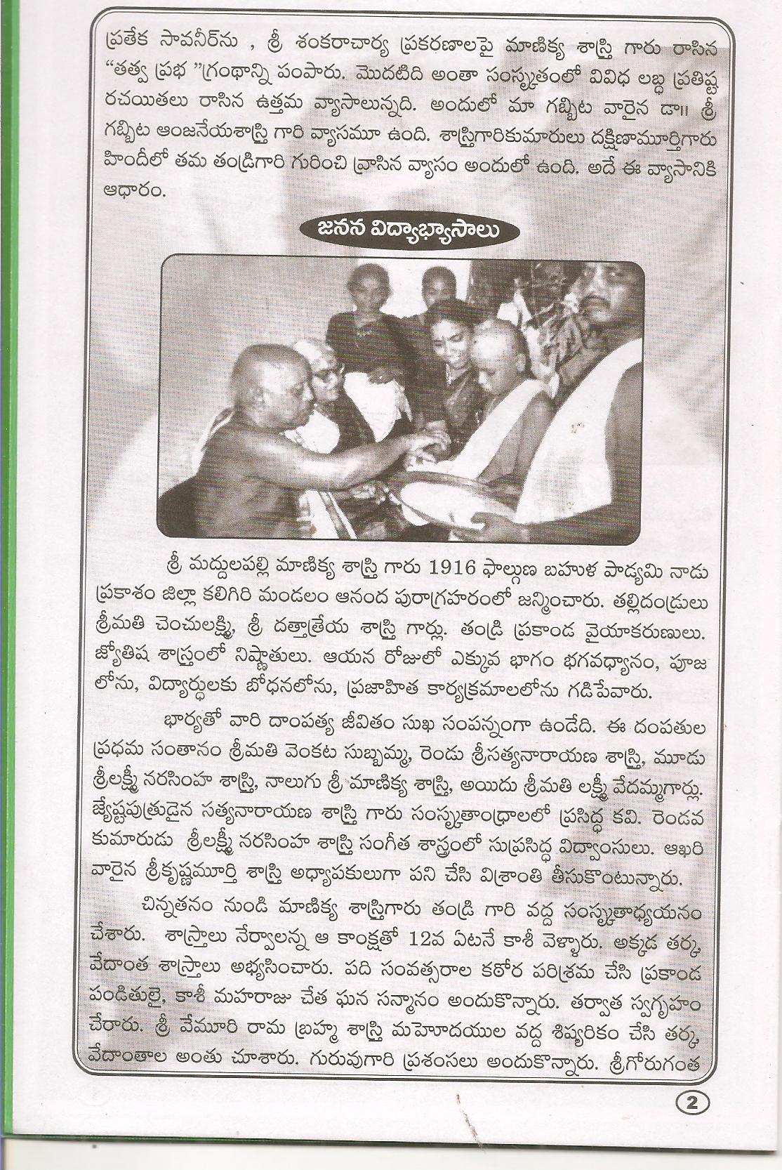 ← శ్రీ మద్దులపల్లి మాణిక్య శాస్త్రి గారి శత జయంతి సందర్భంగా వెలువరించిన బుక్ లెట్