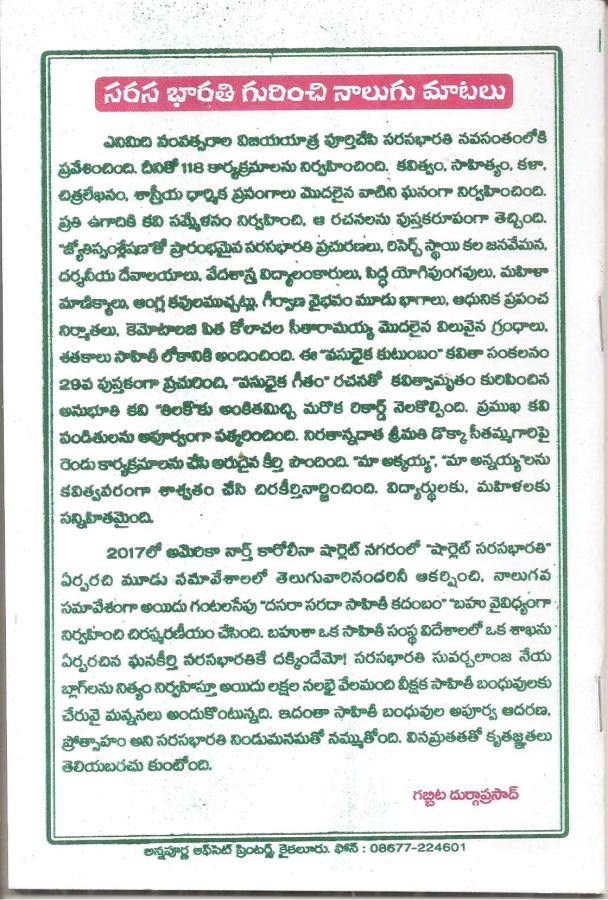 ← వసుధైక కుటుంబం పుస్తకం కవర్ పేజీలు ,తిలక్ కు అంకితవ్యాసం