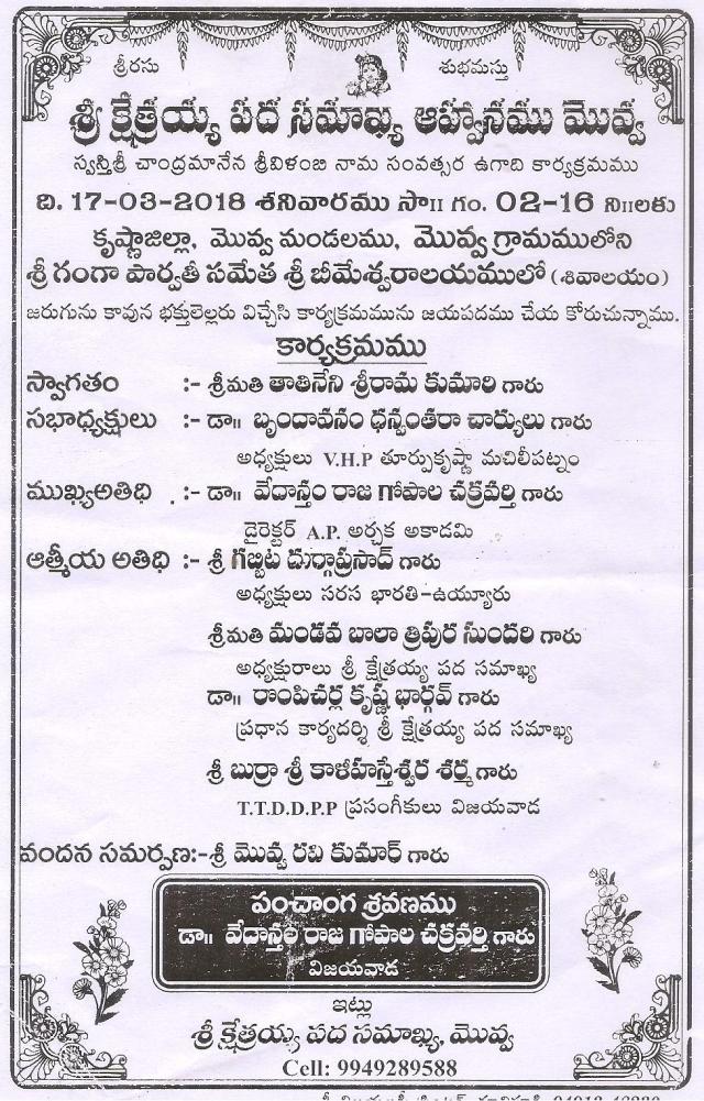 - హాస్య బ్రహ్మ శ్రీ భమిడిపాటి పాటి కామేశ్వర రావు గారి. త్యాగరాజు ఆత్మ విచారం.1 వ భాగం.5.9.25.