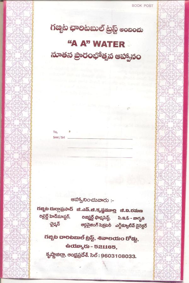 ← ”గబ్బిట చారిటబుల్ ట్రస్ట్” ఆధ్వర్యం లో రేపు 10-4-18 మంగళవారం ఏ ఏ వాటర్ ప్లాంట్ ప్రార0భోత్సవ ఆహ్వానం