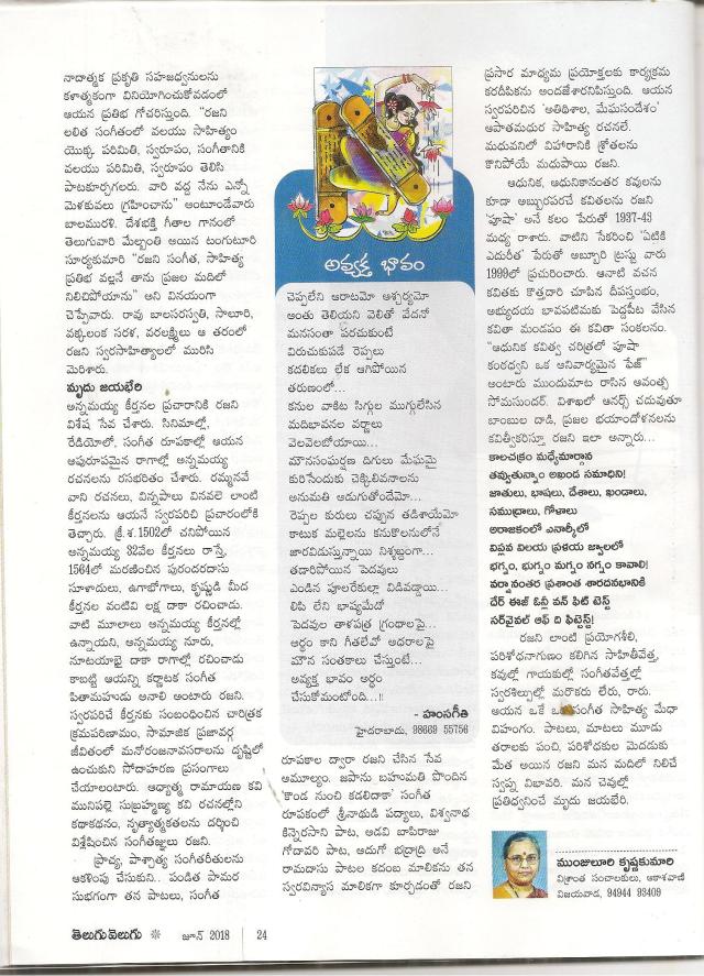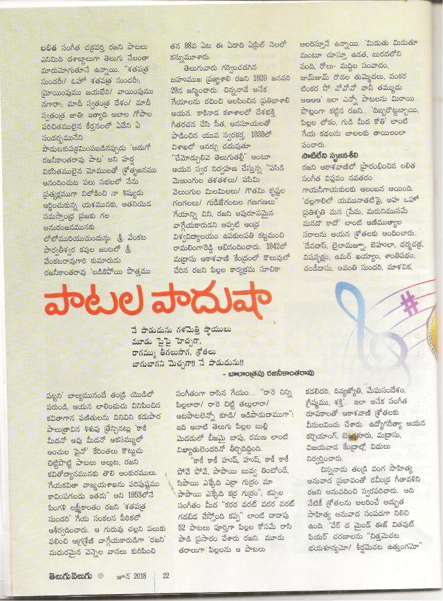 పాటల పాదుషా రజని -శ్రీమతి ముంజులూరి కృష్ణ కుమారి -తెలుగు వెలుగు- జూన్