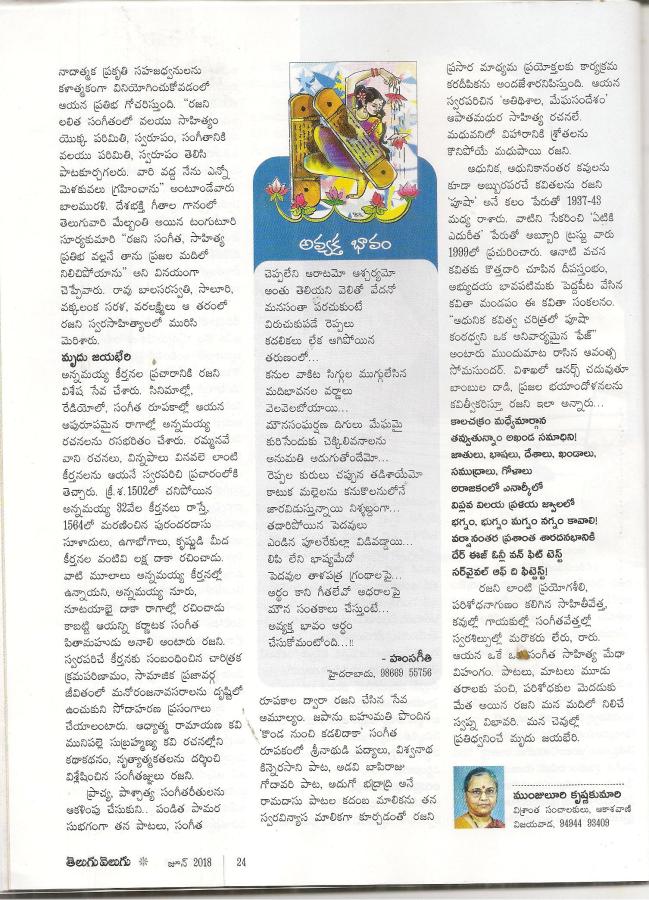 ← పాటల పాదుషా రజని -శ్రీమతి ముంజులూరి కృష్ణ కుమారి -తెలుగు వెలుగు- జూన్