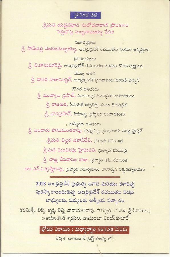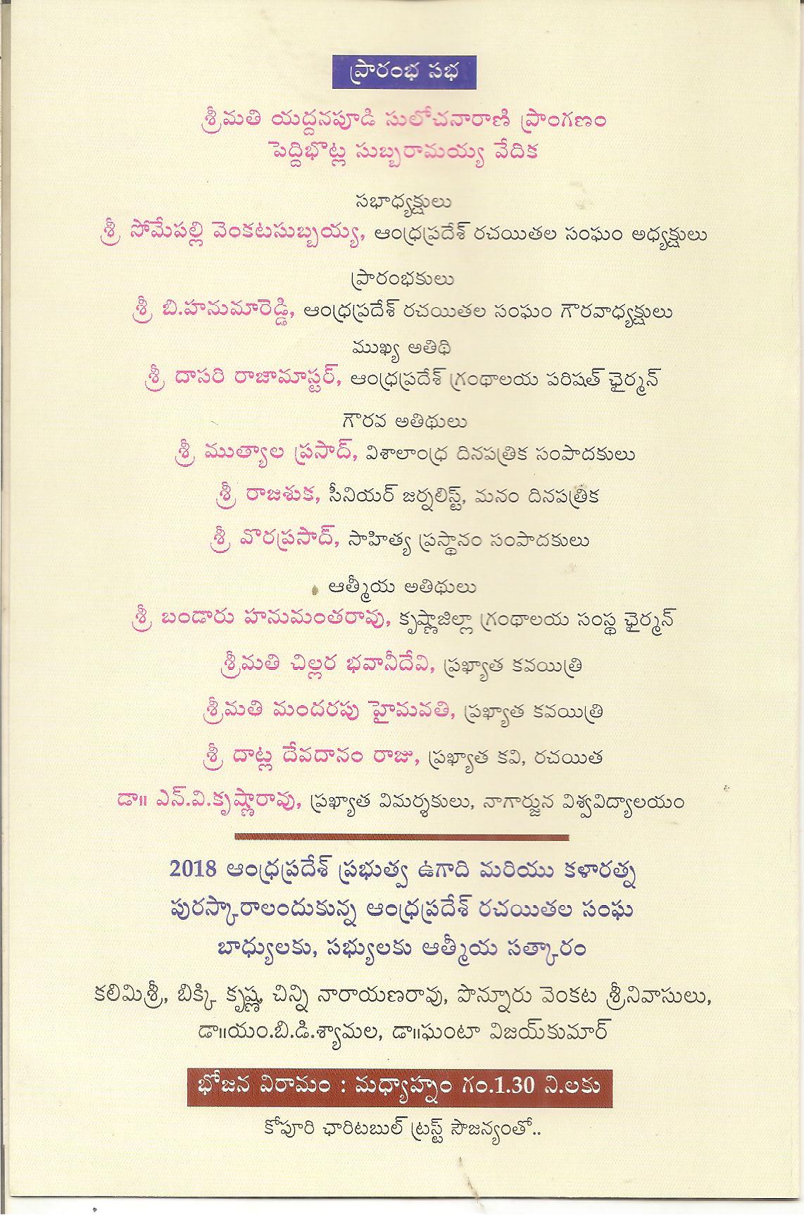 ← ఆం .ప్ర .ర. సంఘం ఆధ్వర్యం లో ఈనెల 10 ఆదివారం ఆంధ్రప్రదేశ్ పై ”ఏకదిన కవిసమ్మేళనం ”ఆహ్వానపత్రిక
