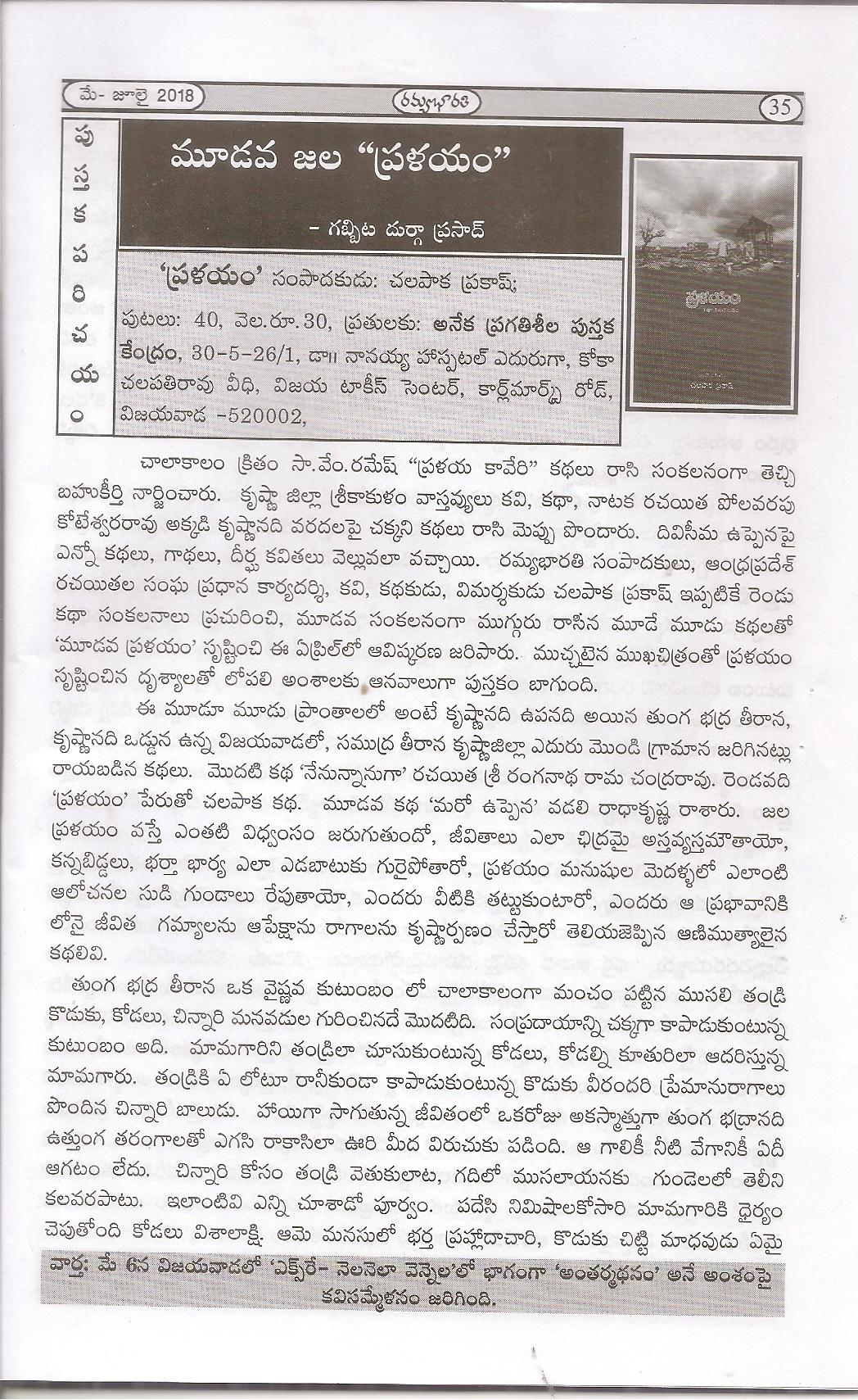 ← ”మూడవ జలప్రళయం ”నా సమీక్ష రమ్య భారతి లో