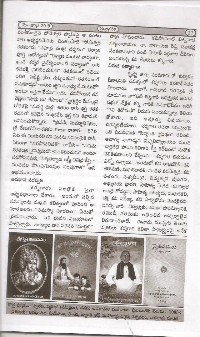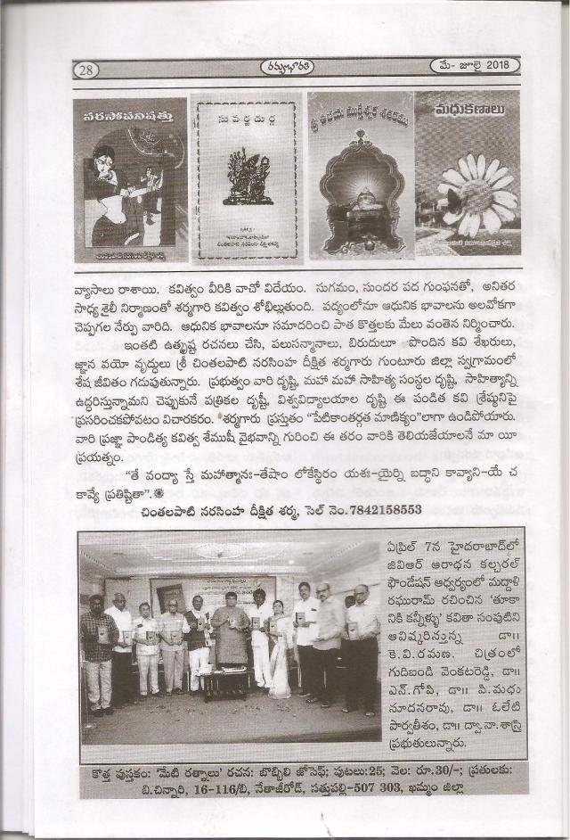 రమ్యభారతిలో శ్రీ చింతలపాటి నరసింహ దీక్షిత శర్మగారిపై నా వ్యాసం