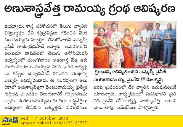 ← సరసభారతి పుస్తక ఆవిష్కరణ న్యూస్ పేపర్ కటింగ్