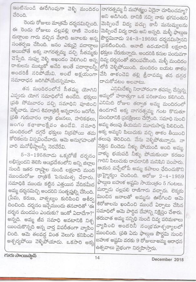 ← అమృత యోగిని -పెనుమత్స సీతమ్మ అవధూత – గురు సాయి స్తాన్ -డిసెంబర్