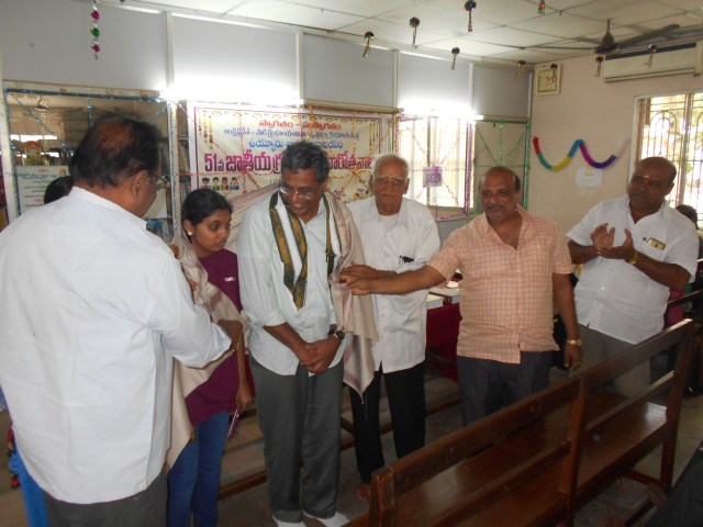 2-12-18 శనివారం ఉదయం ఉయ్యూరు ఎసి లైబ్రరీలో సరసభారతి 135వ కార్యక్రమం లో శ్రీ మైనేని గోపాలకృష్ణ గారి పెద్దకుమారుడు శ్రీ కృష్ణ ,మనవరాలు సెరీనా (అమెరికా )పాల్గొని తమ తండ్రిగారి తరఫున సరసభారతి ఆధ్వర్యం లో లైబ్రరీకి నూతన గ్రంథాలు ప్రదానం ,శ్రీ కృష్ణ గారికి సరసభారతి, వాకర్స్ క్లబ్ సత్కారం చిత్రాలు