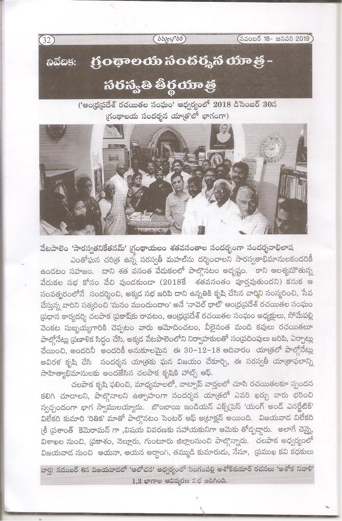 ← గ్రంధాలయ సందర్శన యాత్ర -సరస్వతీ తీర్ధ యాత్ర -రమ్యభారతి (నవంబర్ -జనవరి )లో నా వ్యాసం