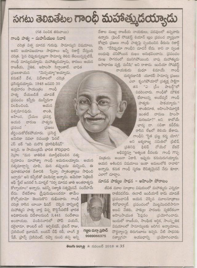 సగటు తెలివి తేటలగాంధీ మహాత్ముడయ్యాడు –నవంబర్ తెలుగు విద్యార్థి లో నా వ్యాసం